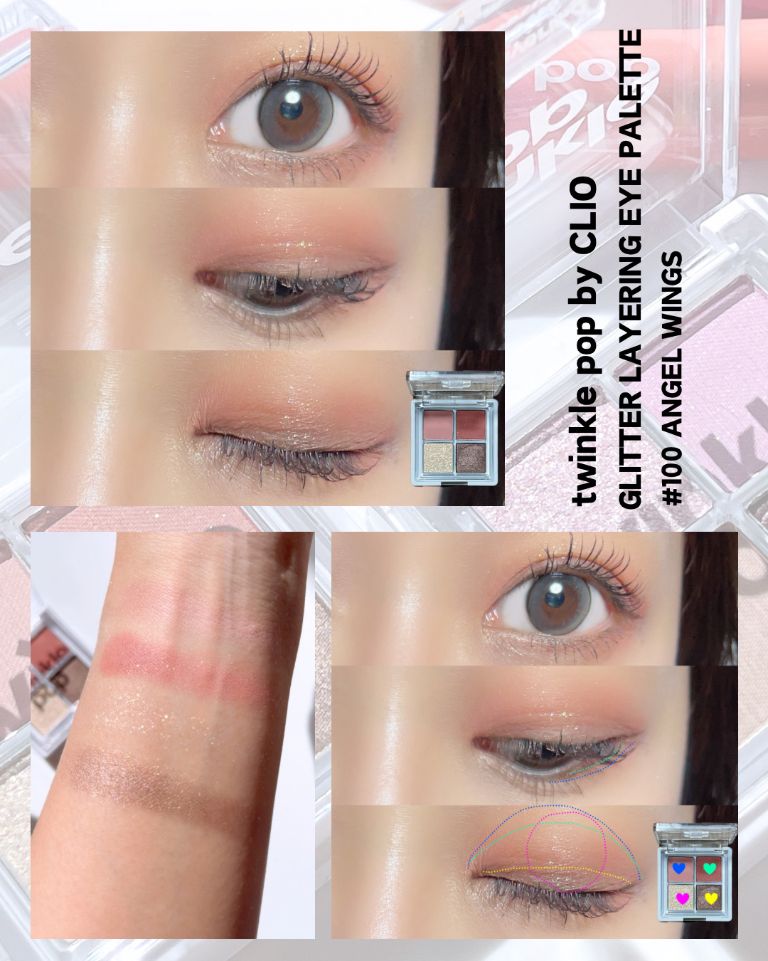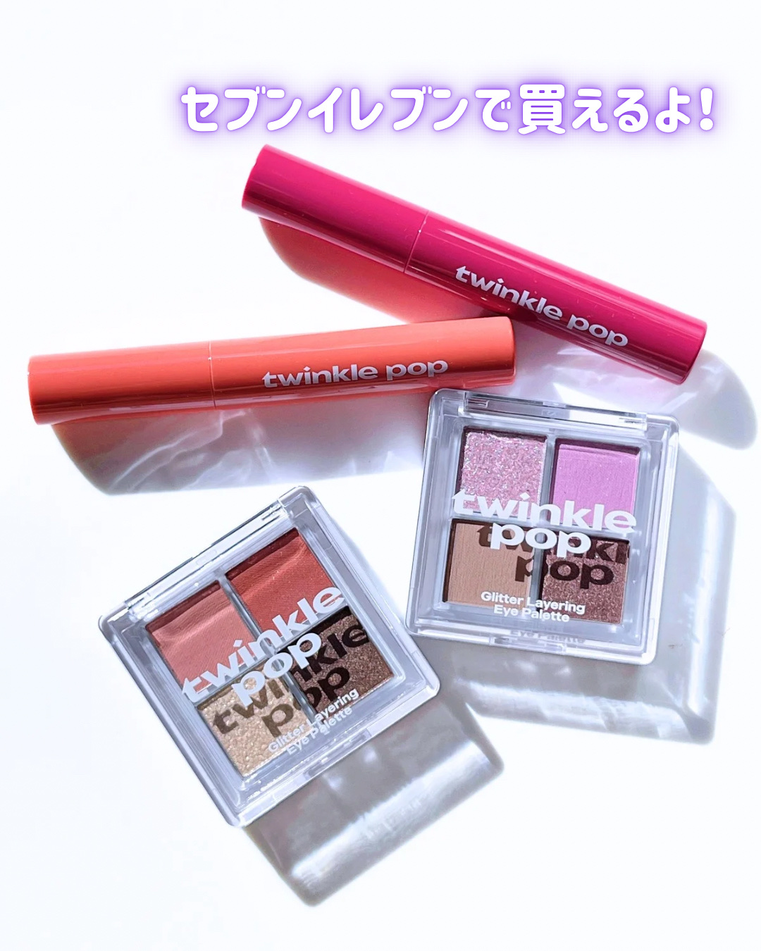 セブンイレブンで展開しているCLIO姉妹ブランド twinklepop by CLIO(トゥインク ルポップバイクリオ)から11月23日から秋冬限定色発売されるよ✨️ グリッターレイヤリングアイシャドウパレット 100ANGEL WINGS/101DREAMY BELL 私はクールカラーのDREAMY BELLがお気に入り♡