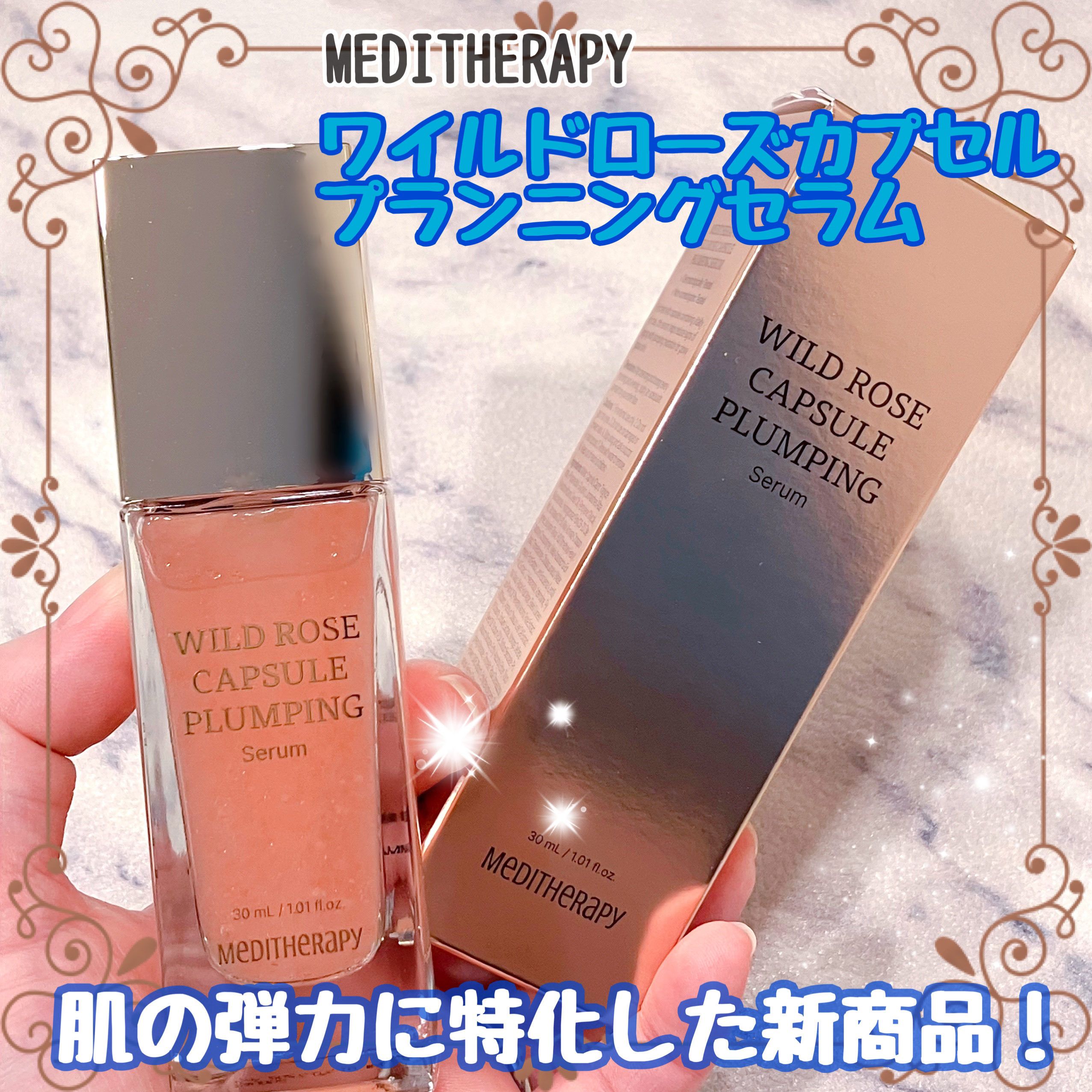 くすみやハリのなさが気になる方に💓 高級感のあるパッケージも素敵なメディテラピーの美容液✨️ テクスチャーはジュレのような感じ! ローズオイルカプセルは違和感なく肌に馴染んでいった🙆♀️ ほのかに薔薇の香りがして 心地よくスキンケアできた🌹