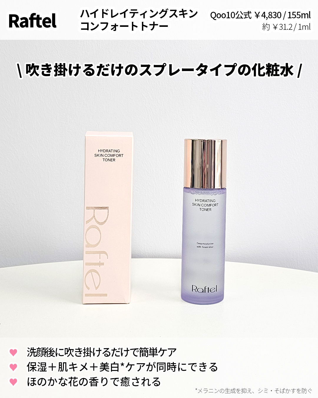 Raftelラフテル💐『ハイドレイティングスキンコンフォートトナー』155ml🌺HYDRATINGSKINCOMFORTTONERスプレータイプ(化粧水)Raftel様からモニター提供🎁いただきました🐦ありがとうございます💗🪷シュッとすると細...