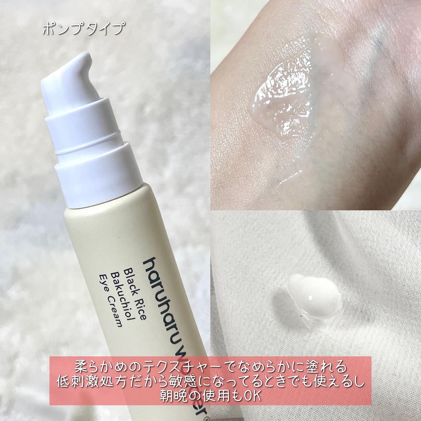 韓国のヴィーガンスキンケアブランド、haruharu wonder🌼 ブラックライスシリーズの製品を3つまとめてご紹介します♡ マッコリみたいなクリーミーなテクスチャのエッセンス。洗顔後すぐのお肌に使うタイプで、お肌を柔らかくほぐしてくれます。 バクチオール配合のアイクリーム👀 目元にハリ感を与えてくれるような塗り午後のアイクリームで、朝晩どちらのスキンケアにも使うことができます。