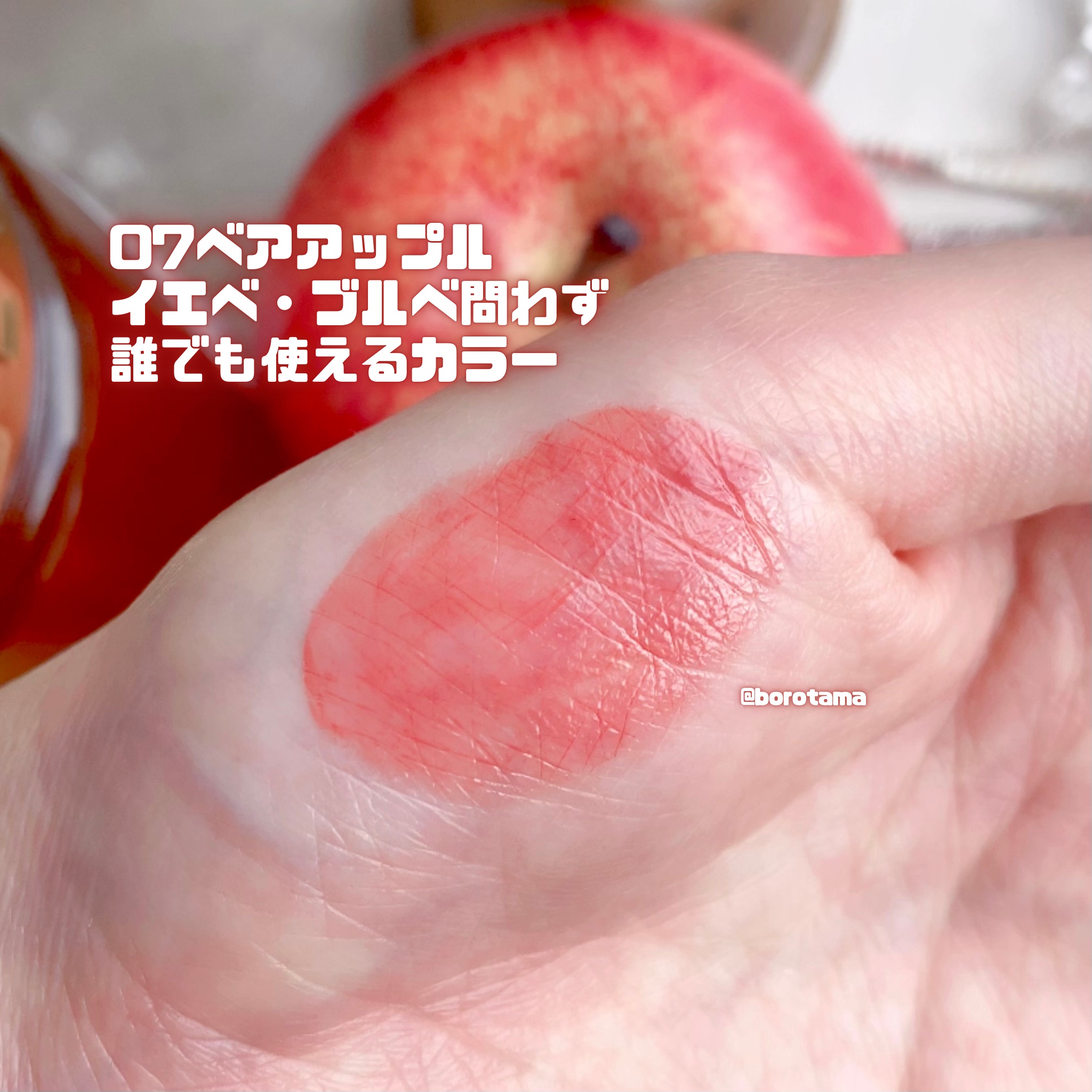 新色【 07 ベアアップル 】がQoo10にて先行発売🍎🍎 コスメヲタちゃんねるサラさんと共同開発をした限定カラーでりんごをかじったようなふんわりアップルオレンジ✨ イエベ・ブルベ関係なく、誰でも使えるカラーだよ◎ 通常販売価格 ¥1,540(税込)がメガ割期間のみ20%OFFで¥1,232(税込)でGETできちゃうよ✊💖