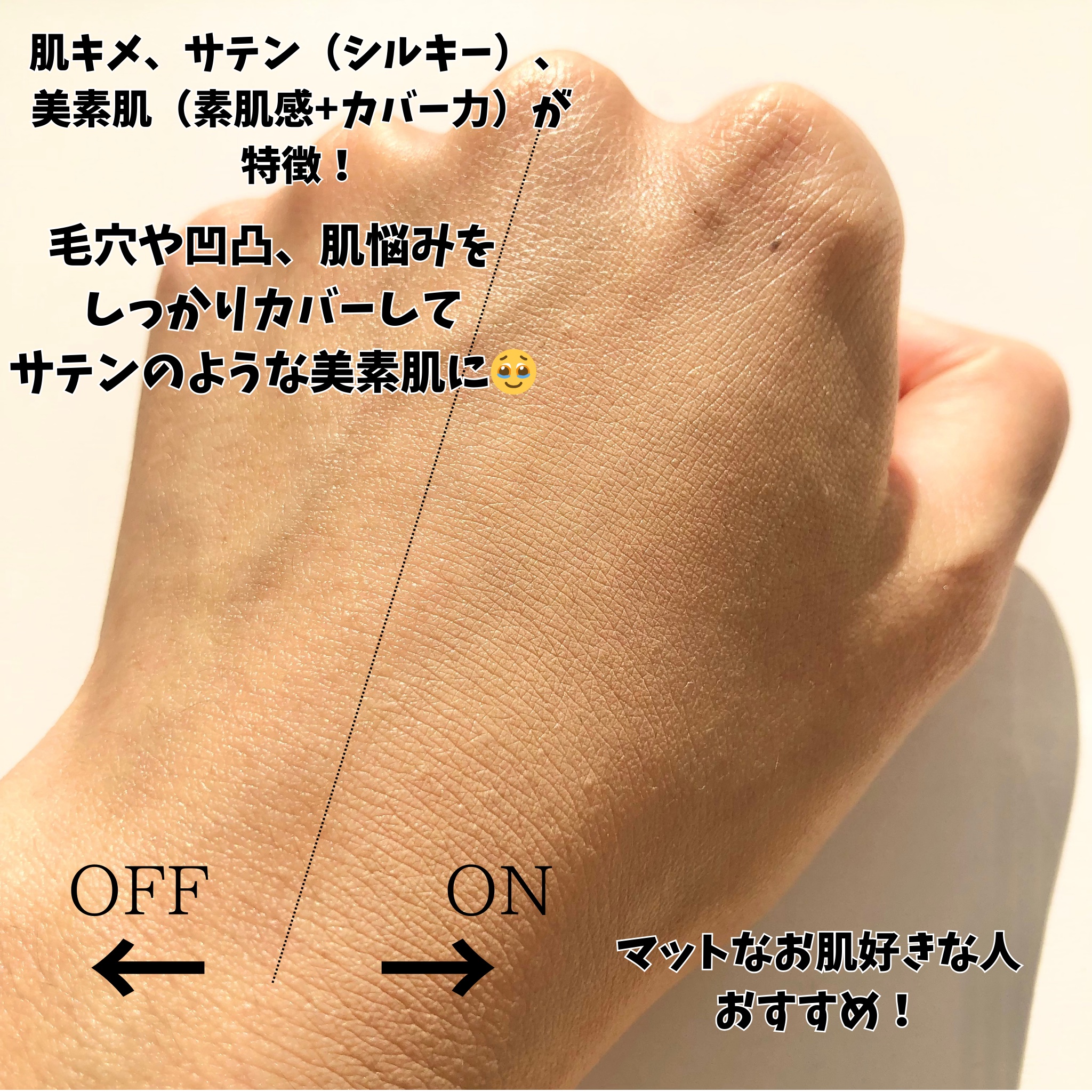 なめらかなシルキー肌が簡単に作れちゃう!! カバー力良すぎーっ🥹✨ セミマット系の若干ツヤ感も有り厚塗り感も無いし密着感の良さも◎ SPF50・PA+++と高めなのも嬉しいポイント💡 しかも長時間付けててもヨレにくくて夕方までキープ出来てたのがすごい𓂃🪞𓈒𓏸