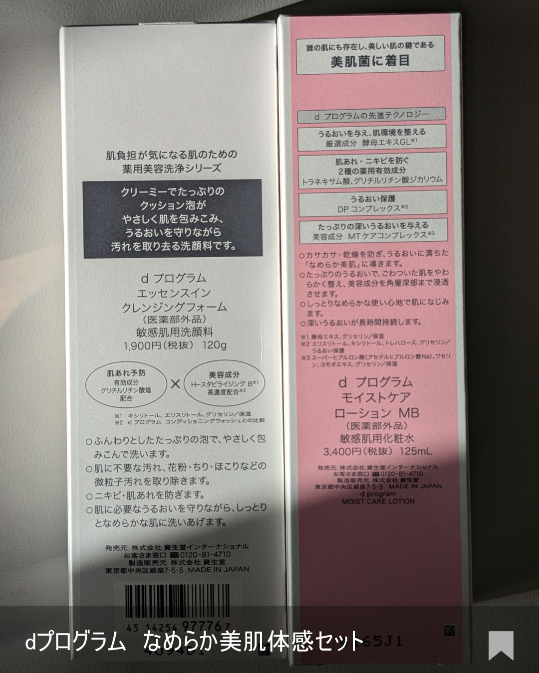 肌悩みに合わせて使えるスキンケアを使用しました🎵 かさつき・乾燥を防ぎしっとり美肌に導く化粧水と肌荒れの原因まで落とす薬用美容洗顔料です。 モイストケアローションMBはサラサラのテクスチャーです。伸びも良く、肌馴染みが良いです。ポンプ式のボトル🧴は衛生的に使えるのと、適量が出せるので好きです。 エッセンスインクレンジングフォームは少量で濃密な泡が簡単に出来ます。弾力のある泡で摩擦なく洗えます。洗い上りはしっとりで、つっぱりなどは感じませんでした。