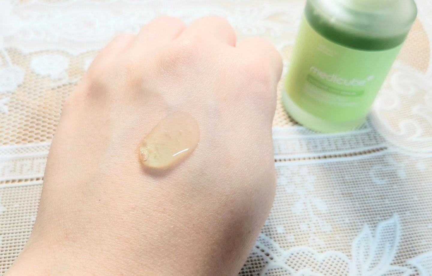 ニキビ鎮静成分84%の高濃縮アンプルです。シカより5.3倍強く急速鎮静とぎっしり水分チャージします。 テクスチャーはとろんとしてジェリーのようです。水分たっぷりなのが肌に乗せた瞬間に分かるほどにプルプルしています。 無着色&香料不使用なのは嬉しい。スポイトで一定量取れるのも好印象です。