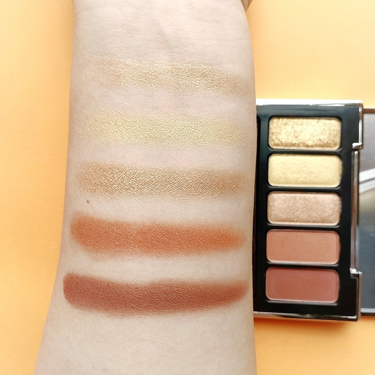 プチプラのクオリティじゃないっ!! 発売前からチェックしていたけれど、ここまで可愛いとは…😆 絶妙カラーで目もとのくすみを飛ばして*明るい印象に🩷 横割りグラデーションでメイクし、立体感をより出したかったので最後に1番左のカラーを上まぶたの真ん中と涙袋にのせています🙆 肌馴染みも良くて粉飛びも感じにくかったです💕 ブラウンの方も店頭に出てたら買おうかな💓