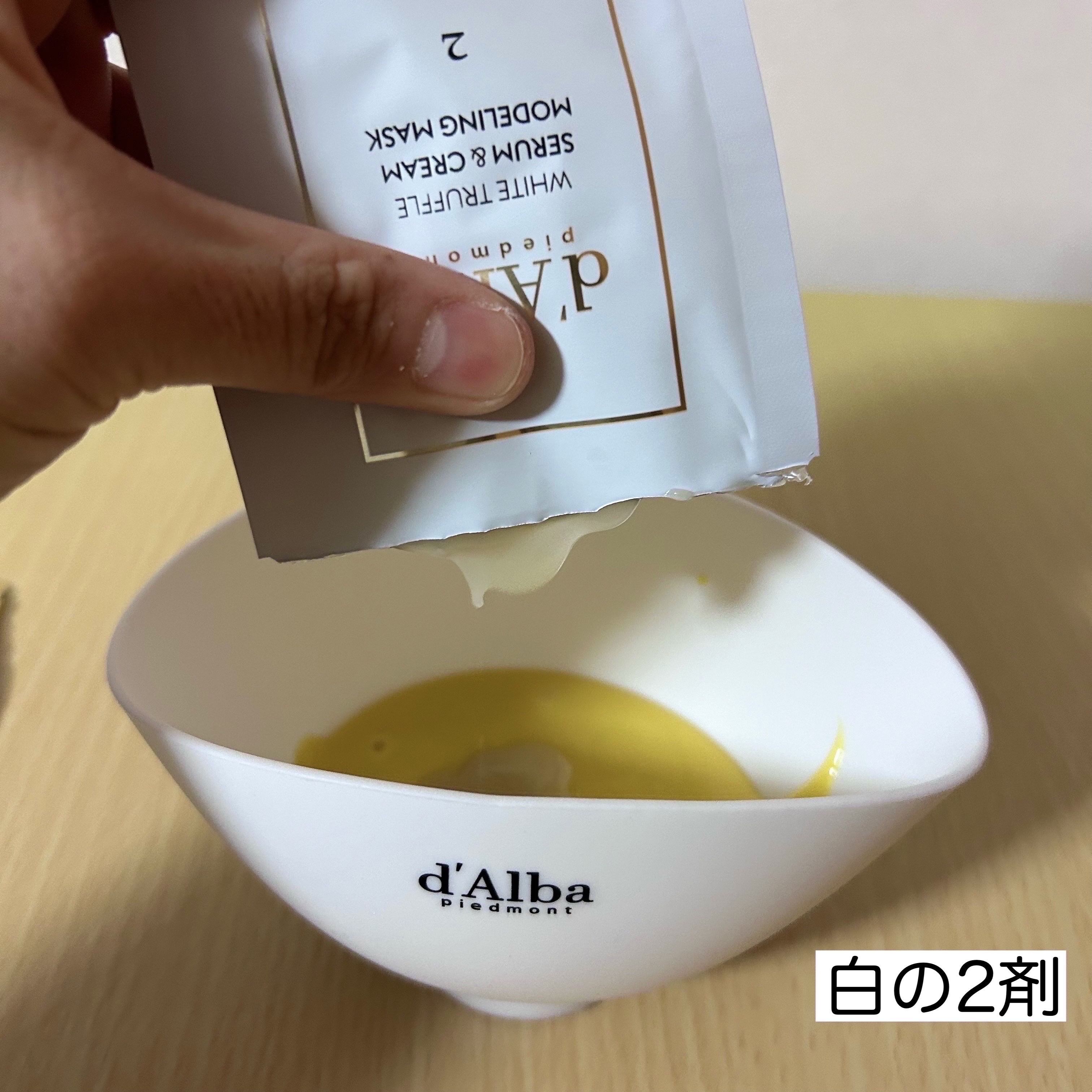 ♡d'AlbaWHITETRUFFLESERUM&CREAMMODELINGMASK。oOo。.:♥:.。oOo。.:♥:.。oOo。.:♥夏の氷河スキンブーストセットのものです✨️このタイプのマスク初めて使いました😂画像2枚目に作り方乗せて...