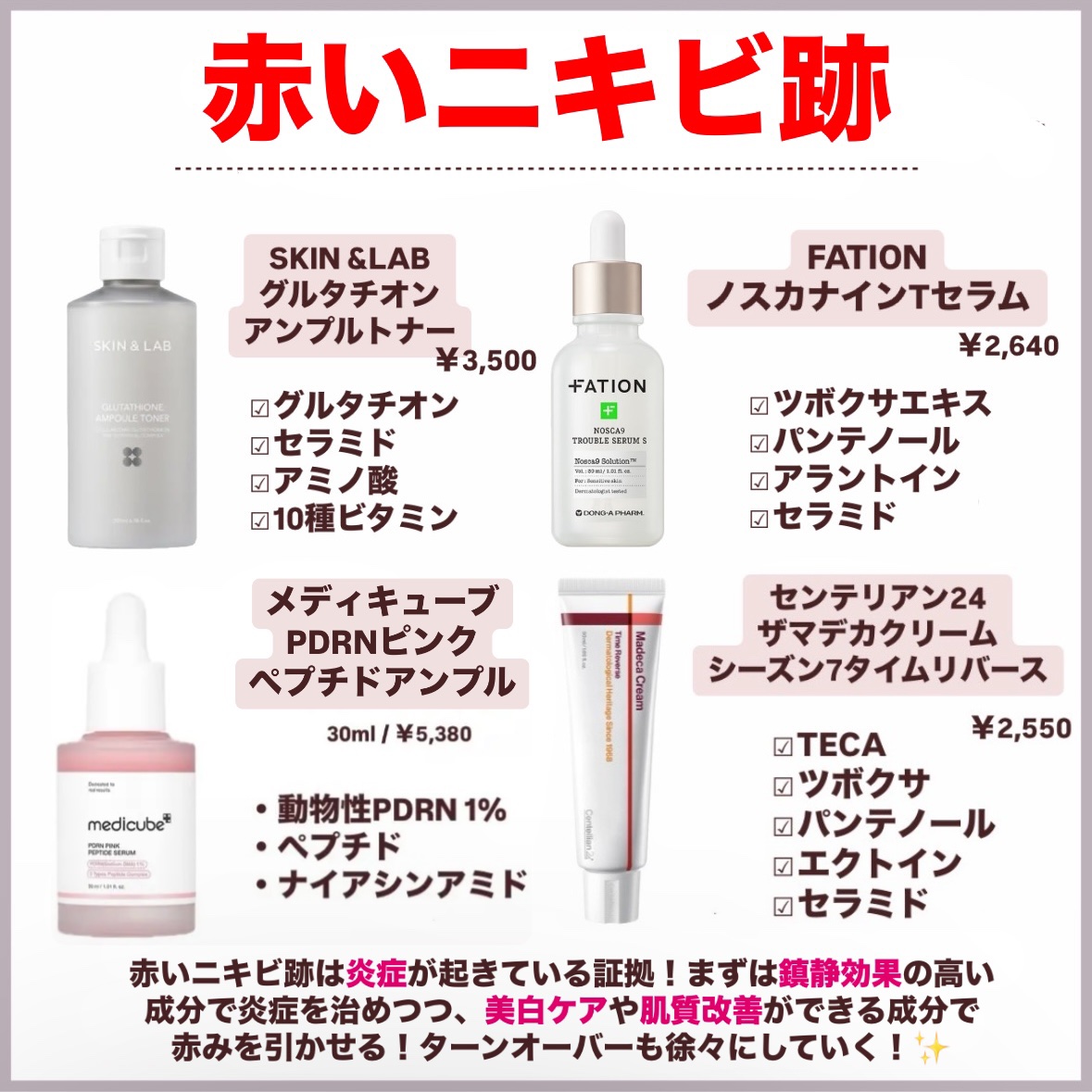 ニキビ跡に驚くほど効果を感じたので今回はその商品の紹介です🥹 これ使うと今あるニキビ跡もマシになるし、新しいニキビも出来にくくなるし🥹 まじいいことしかない、詳しい成分などは画像に記載したのでゆっくりご覧下さい🥹