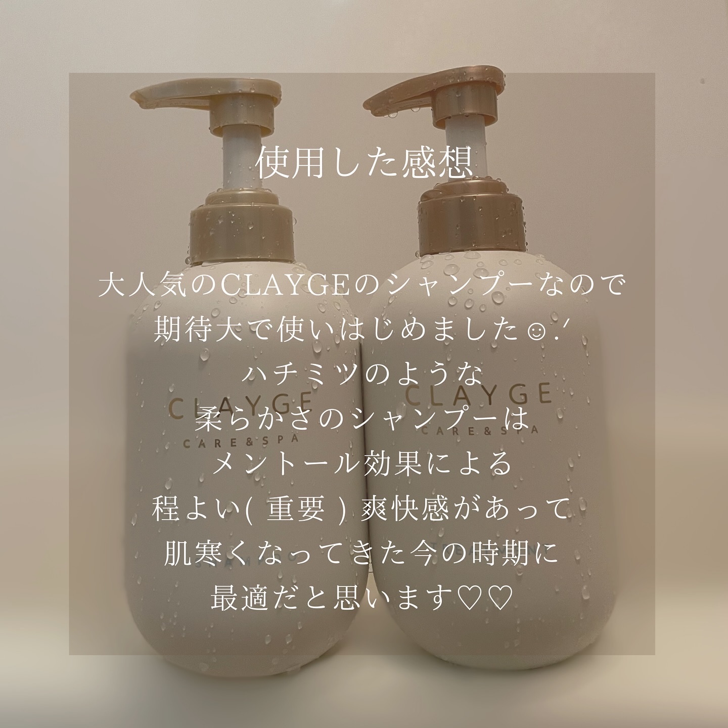 ✿CLAYGE✿シャンプー・トリートメントSR@clayge_official⚪️シャンプーフローラルムスクの香りで甘すぎず清涼感があってスースーする感じ😌泡立ちも良いし暑い季節にピッタリだと思います✨️すぐ洗い流さずに1分放置すると漢草エキ...