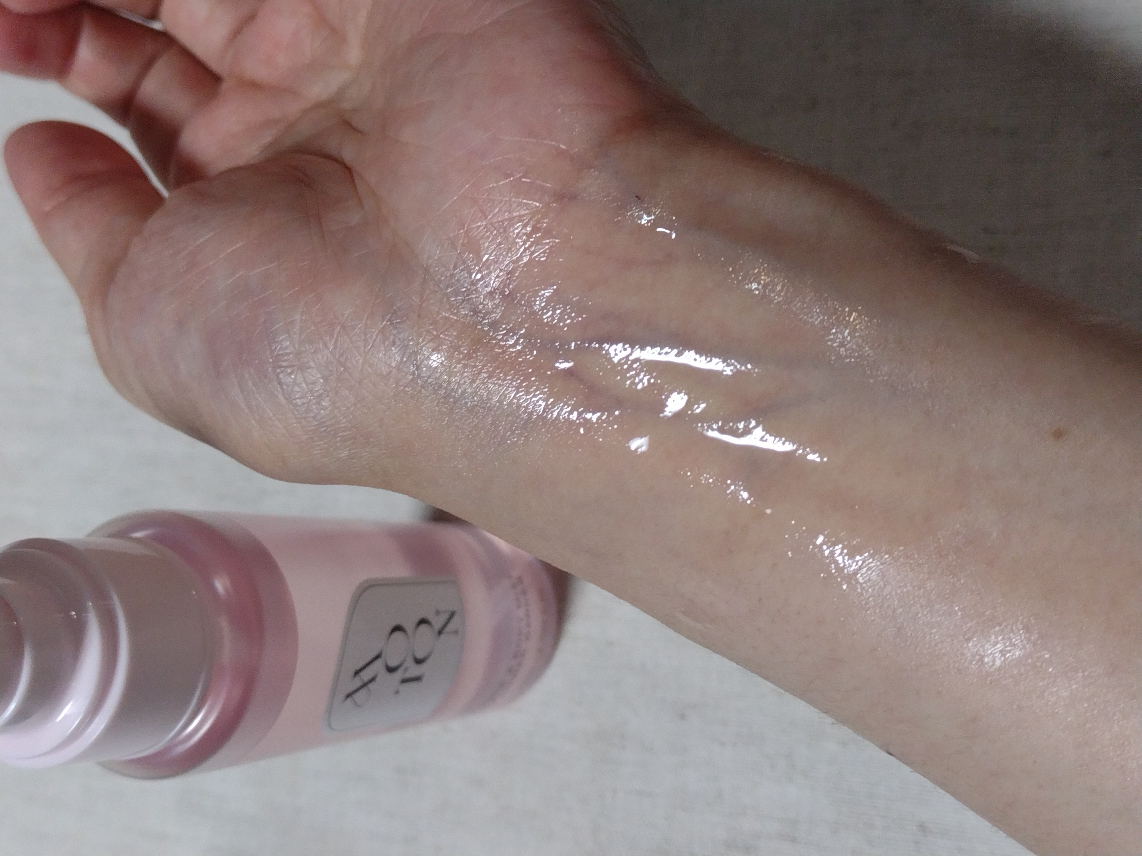 半透明のゆるめのジェルテクスチャー。みずみずしいさらっとした伸びがとても気持ちいい。 美容液は成分が濃いイメージだからとろみやぺたっとしたなじみが多い中、ここまでさっぱりしているなんて驚き。水分と油分のバランスを整え、毛穴も引き締まるから過剰...