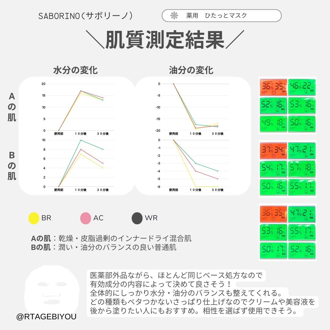 個人的な一押しは「青より緑🌱」 メイク前用で人気な部分用パック🐰 さっぱり、使用後メイクを邪魔しない質感・しっかり1枚目からひたひただけど液ダレなし 混合肌での数値変化を見ると皮脂をしっかり抑えて水分たっぷり入れてくれる&&バランスの良い状態を長時間キープしていてすごい◎