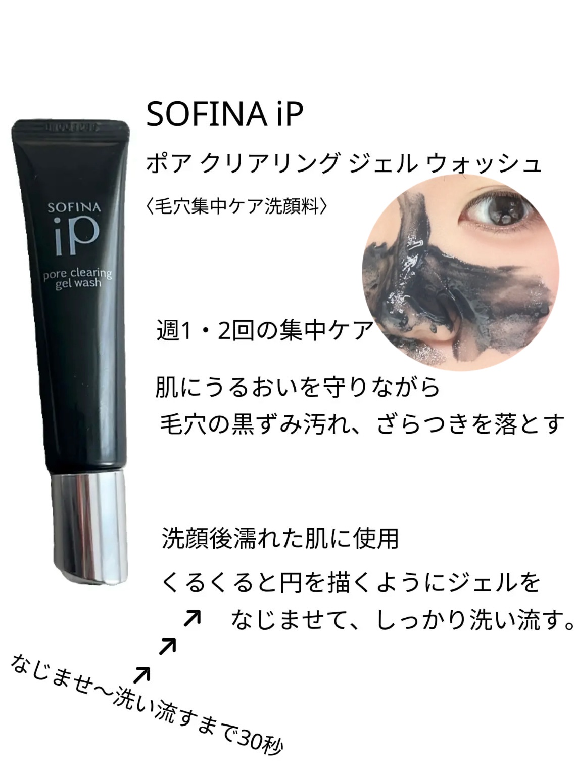 置き去り角栓を内側まで崩壊し洗浄✨毛穴スッキリ!✼••┈┈••✼••┈┈••✼••┈┈••✼••┈┈••✼【使った商品】SOFINAiPソフィーナiPポアクリアリングジェルウォッシュ30g¥1,980【商品の特徴】黒の直塗りジェルが、汚れが気...