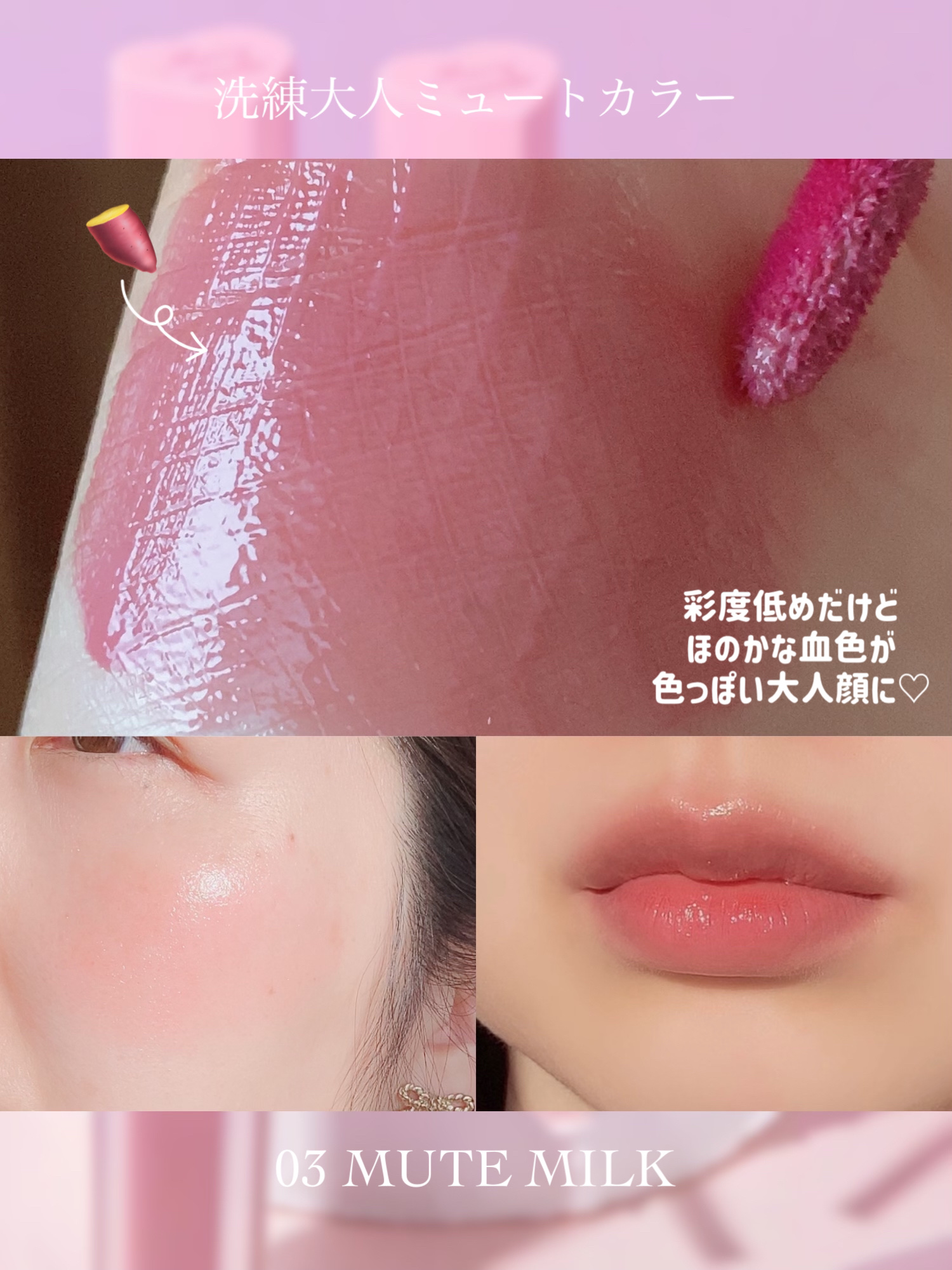- 牛乳を混ぜたような特有の真っ白なカラーが特徴のグロッシーティント 韓国では2023年11月に総ダウンロード数1,600万の韓国発No.1女性ファッションECアプリを運営するABLYにてリップ部門ランキング1位を獲得、日本公式ローンチ前ビューティートップクリエイターemiseyoが自発的で進行したtiktokショートコンテンツが500万ヒット数に迫って突風を起こしました。その勢いを続け、12月に日本のQoo10に立ち上げ当日、リップメイク製品1位を上回り、短時間で累積レビュー700件を達成いたしました。植物性天然オイルビーガン成分のしっとりとした水光のティントで何度も重ねるほど、真っ白な光沢が際立ちます。 2024年4月より全国のバラエティショップに販売スタート