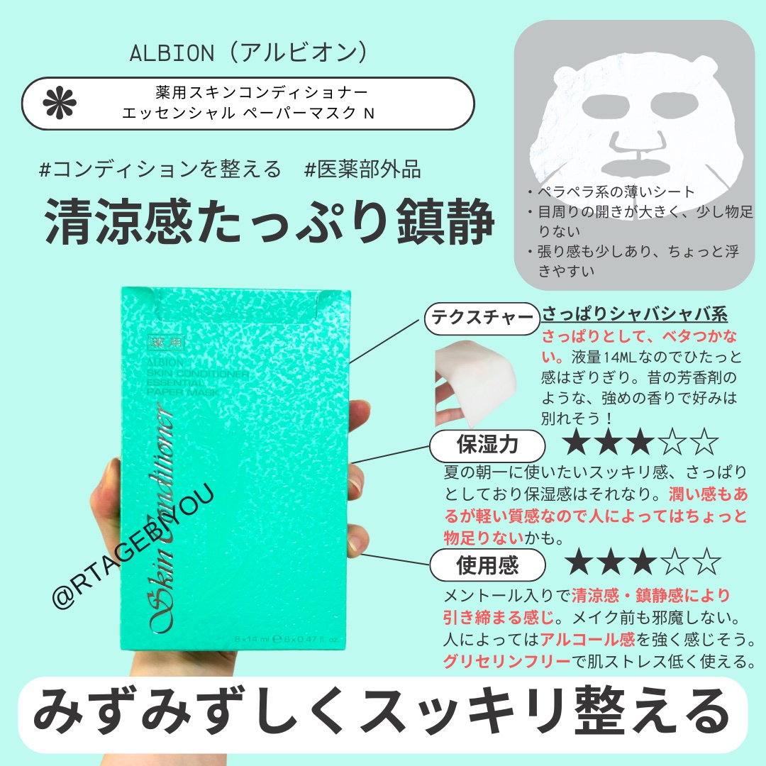 \スキコンマスクでサッパリ!/【ALBION薬用スキンコンディショナーエッセンシャルペーパーマスクN】乾燥や肌荒れ、ニキビなどのゆらぎやすい肌のコンディションを健やかに保つ美容液を含んだフェイスマスク✨保湿成分として国産ハトムギの品種「北のは...