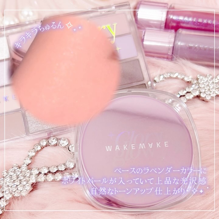 WAKEMAKEホリデーシリーズ🦄 ラベンダーやピンクのパウダーでくすみを飛ばしつつトーンアップ🫶🏻 パール感があってツヤっぽく、さらっとした仕上がり! ホリデーシーズンにもぴったり💗