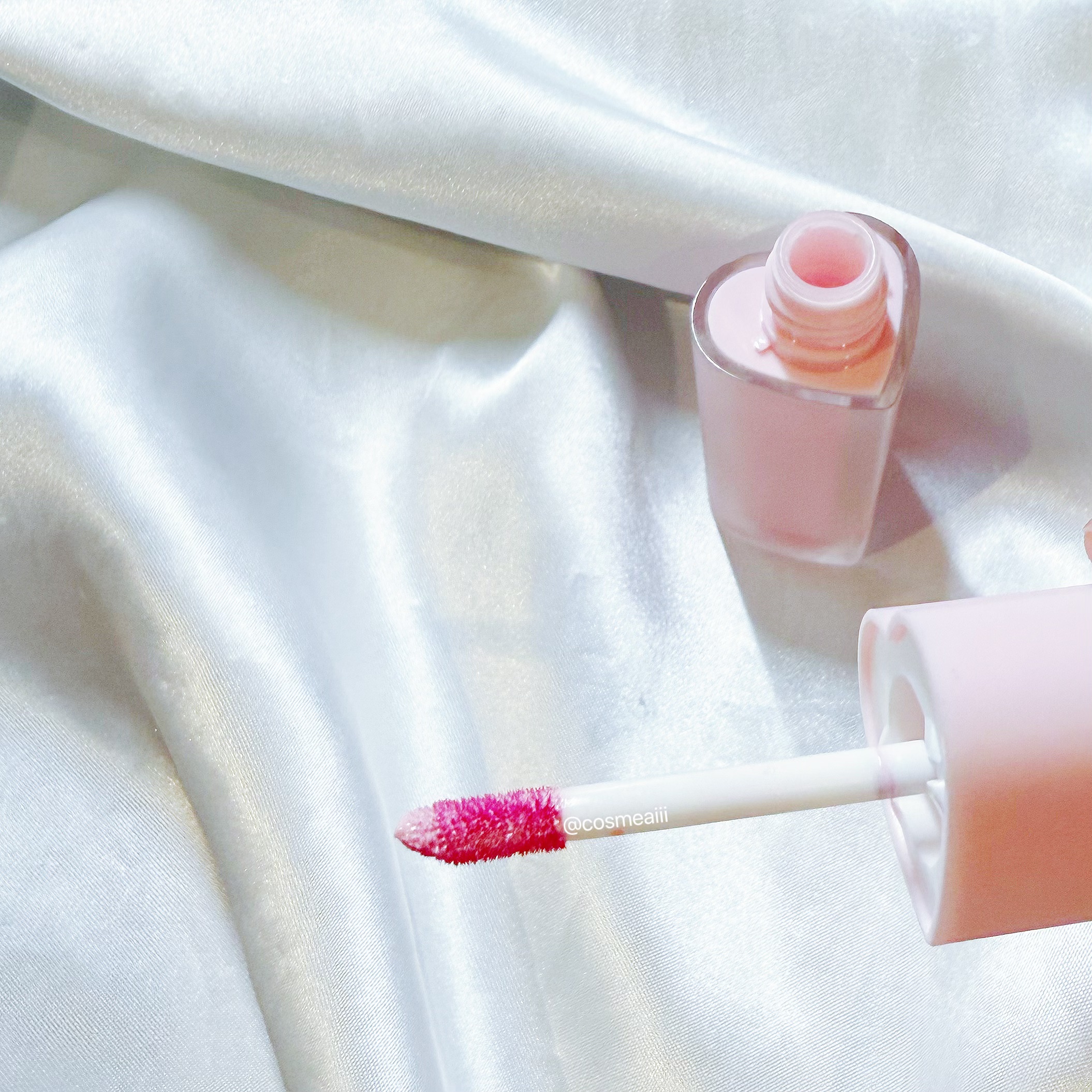 白いパケで開けるところがゴールデンピンクになって、 まるでデパコスみたいな質感🥺💕💕💕 ツヤタイプ 塗ってしばらく置いたら膜ができてツヤも色持ちもずっとキレイに残る 色持ち良いです。ツヤ無くなっても色がそのままキレイに残る 匂いはお花の香りです。 保湿力はかなり高いと思う◎