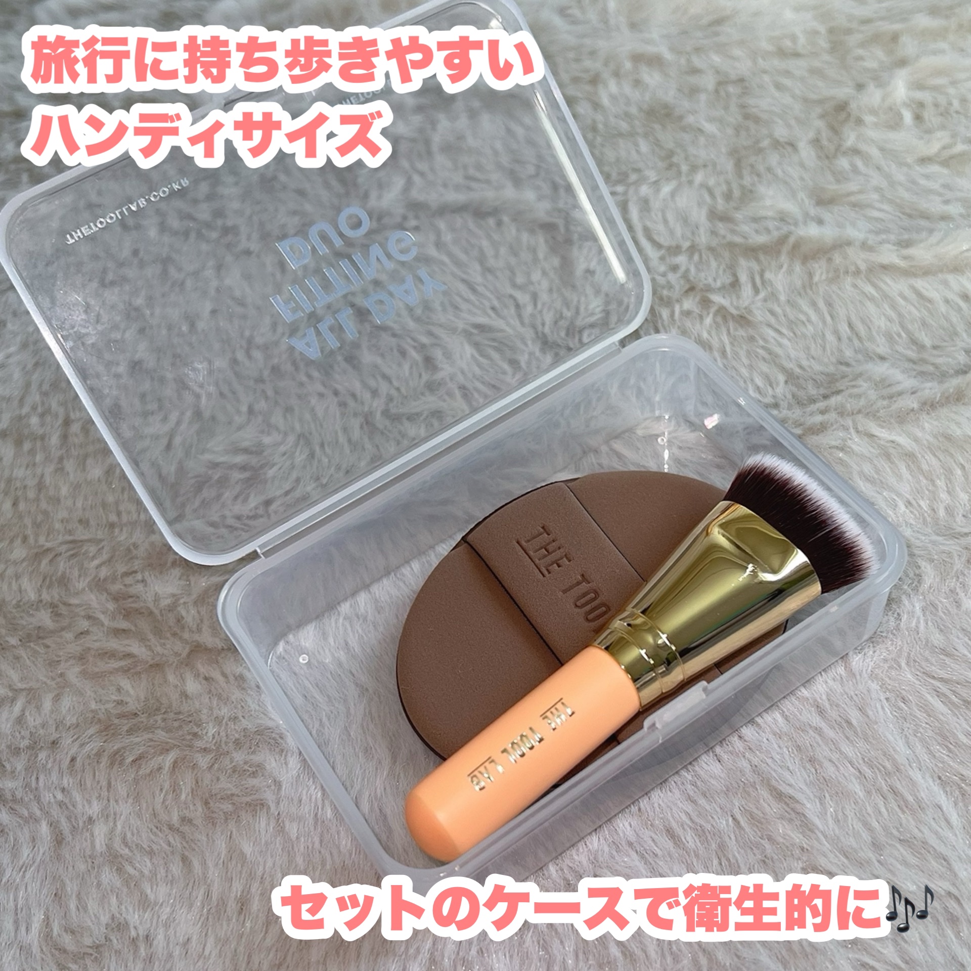 ブラシ+メモリーフォームパフで薄く均一な仕上がりにっ⟡.* ケースがついてて持ち運びにも便利🥰 このブラシとパフを使うことによってより密着して毛穴や凸凹をカバーしてくれるの🤍 全国のロフト、Qoo10で購入できるよ✨️ 是非チェックしてみてね.ᐟ.ᐟ