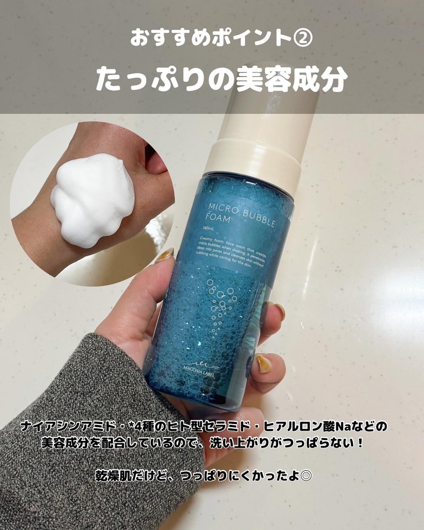 しゅわしゅわしっかり肌に馴染み入り込む泡🫧 マイクロバブルフォームaは、ファインバブルの「洗浄力」に着目し、なめらかな泡に美容成分をたっぷり配合した、お肌にやさしい摩擦レスの泡洗顔料なのです🩵 しゅわしゅわと肌に吸い込まれていくような感覚で、炭酸洗顔のような使い心地です🌿 肌にしっかり密着し、毛穴を洗浄してくれている感じを実感できると思います🩵