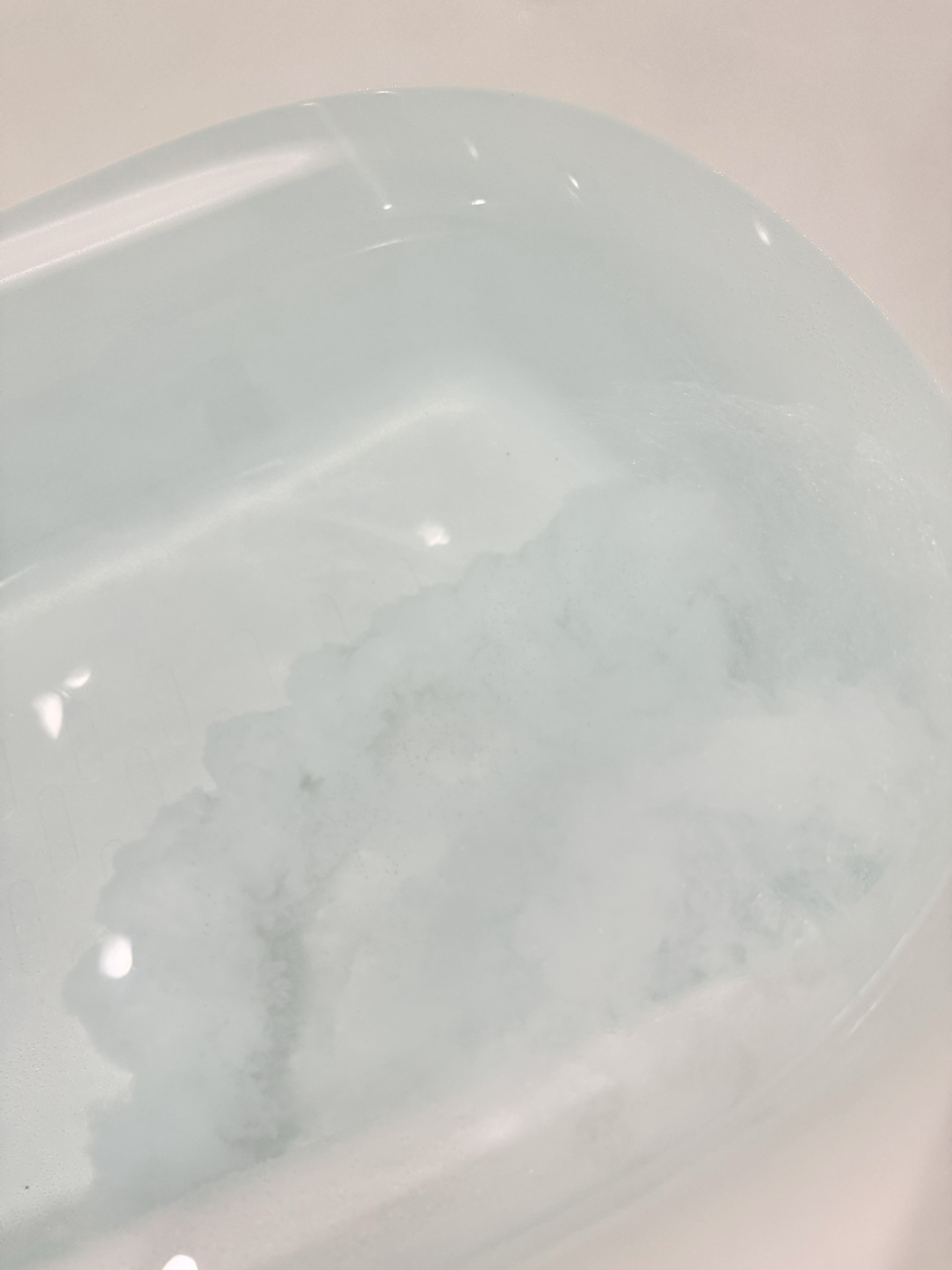 保湿しながら、やすらぎ温浴体験。 主成分として天然芒硝(ぼうしょう)を使用した、自然由来成分98.3%のバスパウダーです。 きれいな白色のにごり湯が完成! にごり湯って、お風呂上りにぬるぬるしてしまうイメージがありますが、ぬるぬるはまったくなく、サラサラでなめらかなお湯です! 癒しのウッドの香りがリラックス効果抜群で、毎日のバスタイムが楽しみになっています!