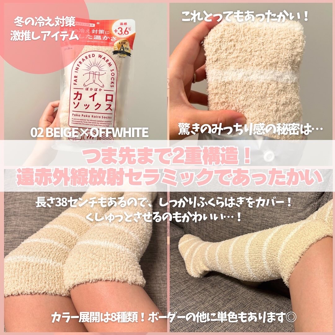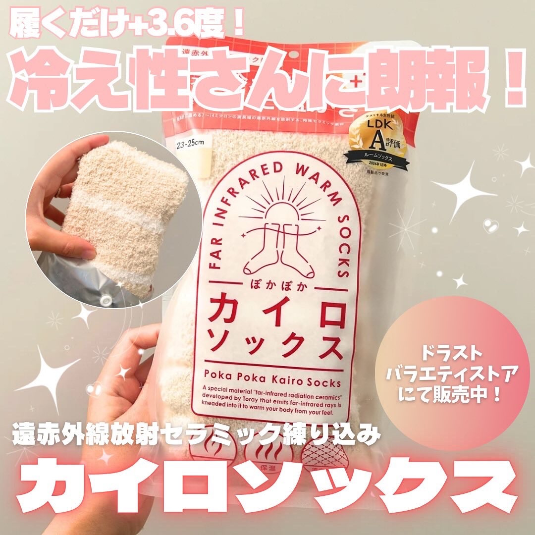辛口コスメ評価誌“LDK”でA評価を獲得した、あったか靴下「ぽかぽかカイロソックス」です✨ 赤外線放射セラミックを練り込んだ繊維を使用し履くだけで温感+3.6°Cじんわりと温めてくれます。 ぽかぽかカイロソックスは全体38cmとロングサイズでふくらはぎもすっぽりとカバーしてくれます。