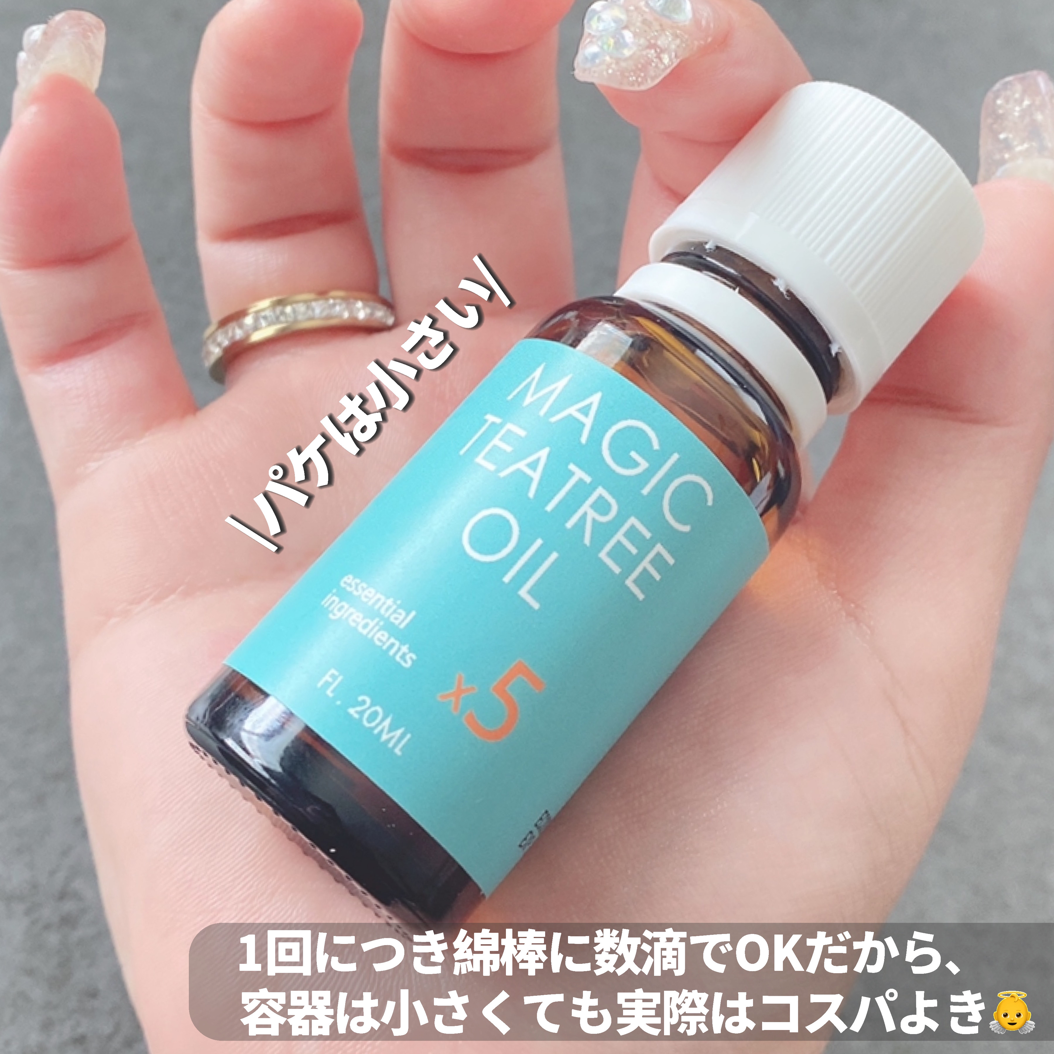 - マジックティーツリーオイルは、乾燥や皮脂による肌悩みをスポットケアし、整える商品です。ブラン代表の整肌成分である4‐テルピネオールで肌トラブルの原因の1つである皮脂を素早くケアします。 【このような方におススメ】 ✔乾燥による肌悩みが気になる方 ✔過度な皮脂と油分が気になる方 ✔べたつきのないスキンケアを探されている方 ✔肌荒れを防ぎたい方 ✔年齢性別肌タイプ関係なく使用できる商品を探されている方 【使用方法】 ①洗顔後、コットンに適量を取り、軽くふき取った後馴染ませます。 ②気になる部分の肌をきれいに洗顔後、トナー→クリームの順でお肌を整えます。 ③綿棒に1~2滴落とし、気になる部分に塗ります。 経過を見て朝晩のスキンケアの最後の段階に塗ることを繰り返します。