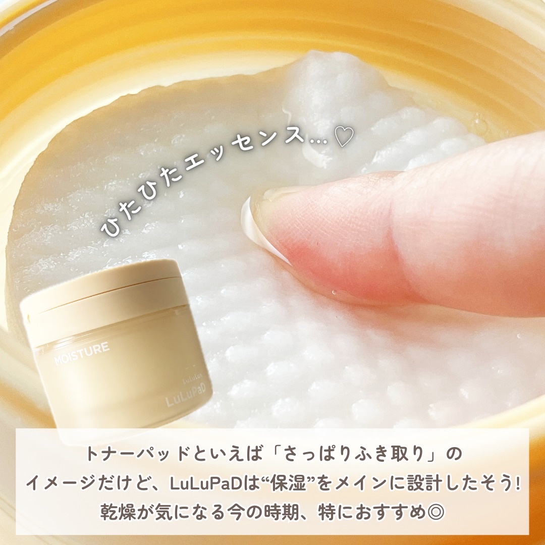 ルルルンからトナパが出てた〜!!! 通称「LuLuPaD」ですが、発売から結構たっていてしかも私ルルルン大好きなのに今回初知り😭😭 しっかりしたエンボス面となめらかな面があり、保湿パックや角質のふき取りなど全身に使えるマルチユースなスキンケアアイテムです🪄 MOISTタイプはしっとりなのにベタつかず乾燥肌さんや冬場の朝洗顔代わりにもおすすめ💛