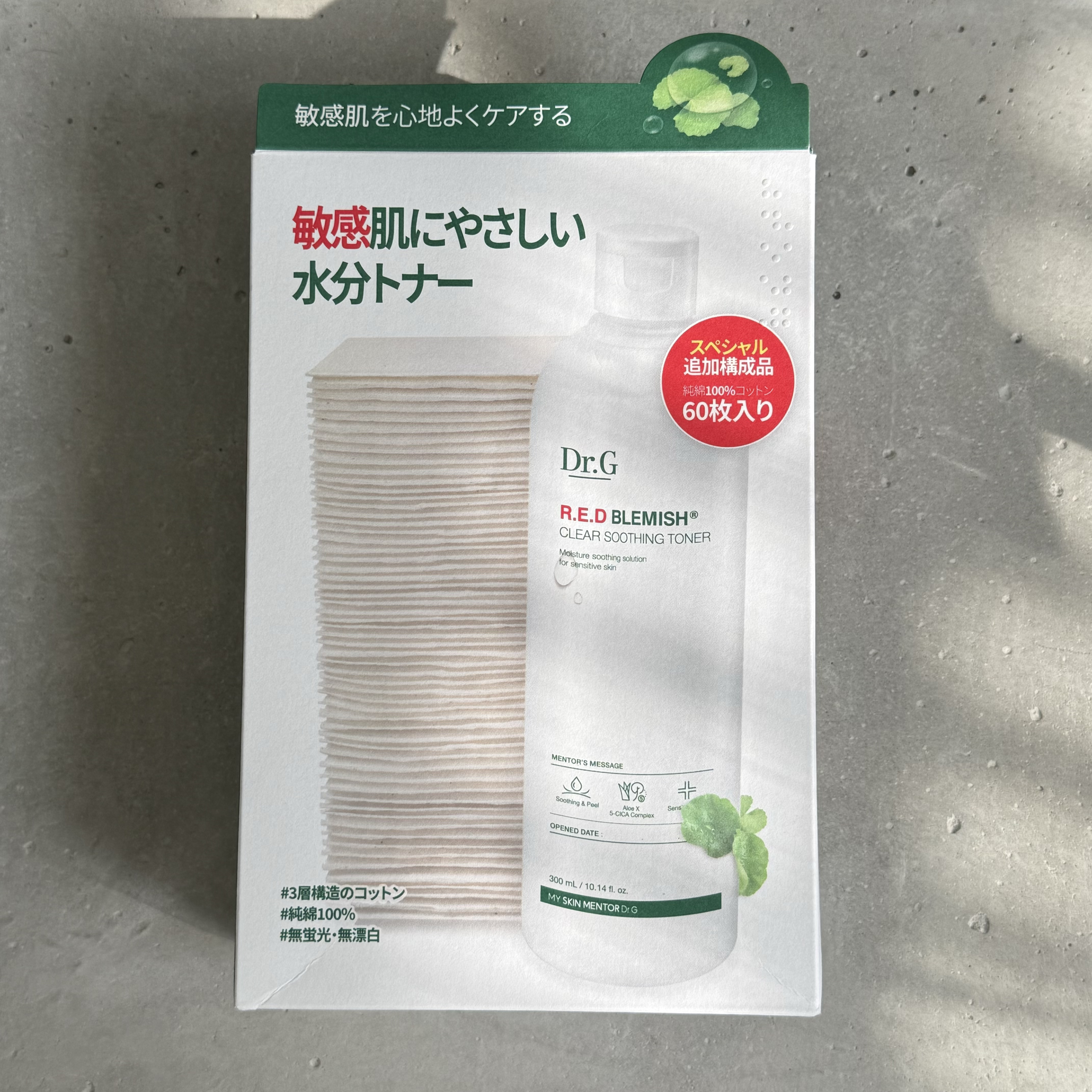 Dr.G様から、レビュー後のプレゼントでいただきましたありがとうございます敏感肌にやさしい水分トナー!〰️〰️〰️〰️〰️〰️〰️〰️〰️〰️Dr.G💚レッドプレミッシュクリアスージングトナー 300ml💚ナチュラルソフトタッチ三層コットン ...
