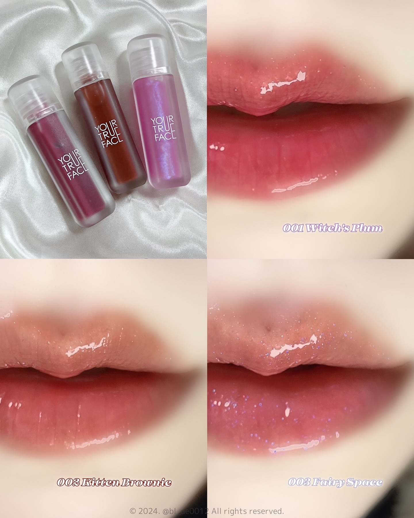 このリップとても好きだ……! とろっとしつつ、ちょっと硬めのテクスチャーがぴたっと密着してくれるのでむっちりした唇になる💋特に002のカラーが好き。絶妙なブラウンカラーでメイクがきゅっと締まる気がする! 001はプラムカラー。透け感があるので使いやすい✨003はみんな大好き、私も大好き青ラメ🩵単体で使っても可愛いけれど、他のリップに重ねても可愛い! Qoo10のDOERショップで購入可能です🛍️