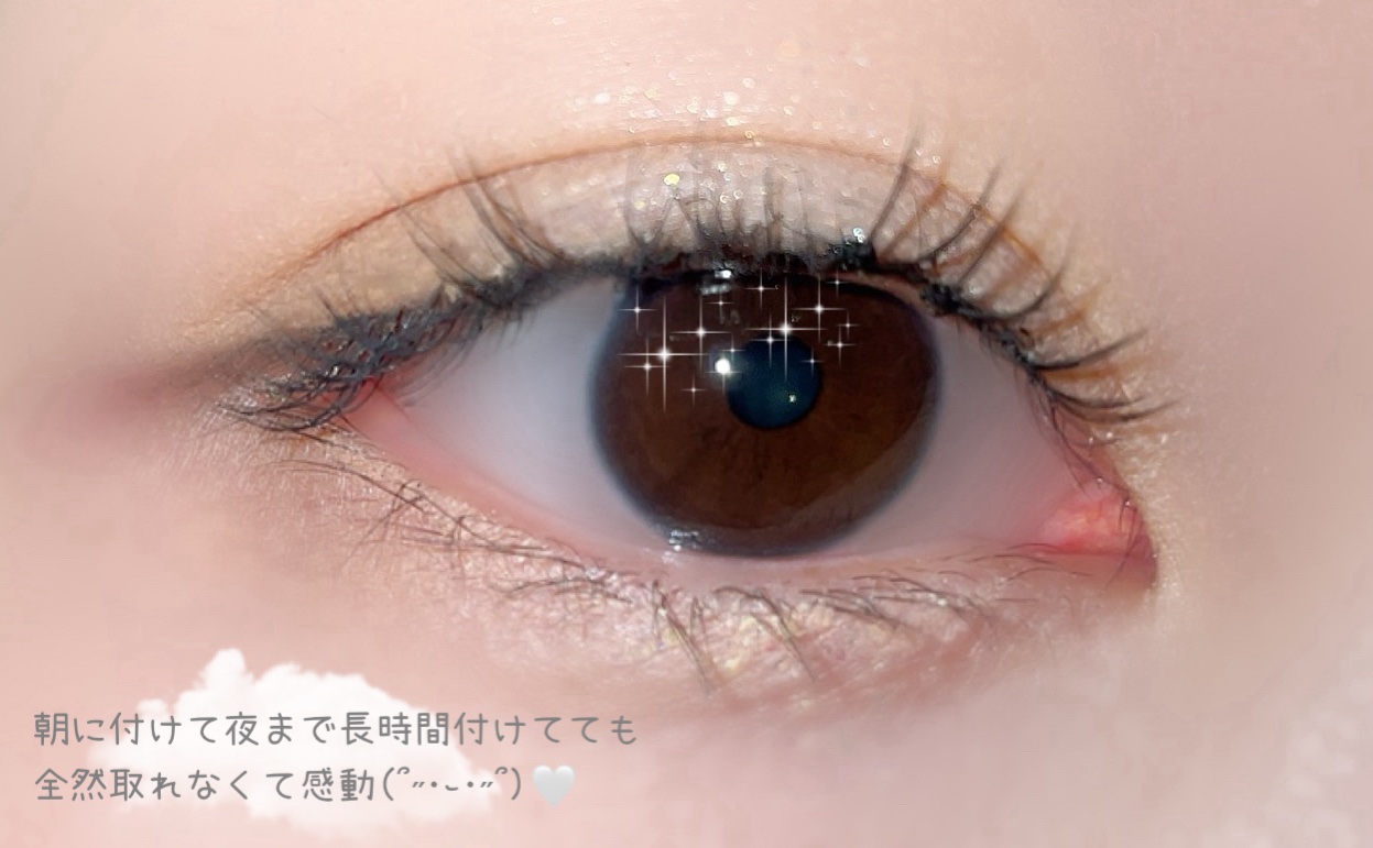 大粒偏光パールでピンクベージュぽい色味に多色ラメがキラキラ輝いてる。 涙袋に塗るとぷっくりかわいらしいうるっとした瞳になれます 🤍 しっとりした粉質で質感も上品で重ね塗りしてもギラギラした感じにならないので使いやすい ◎