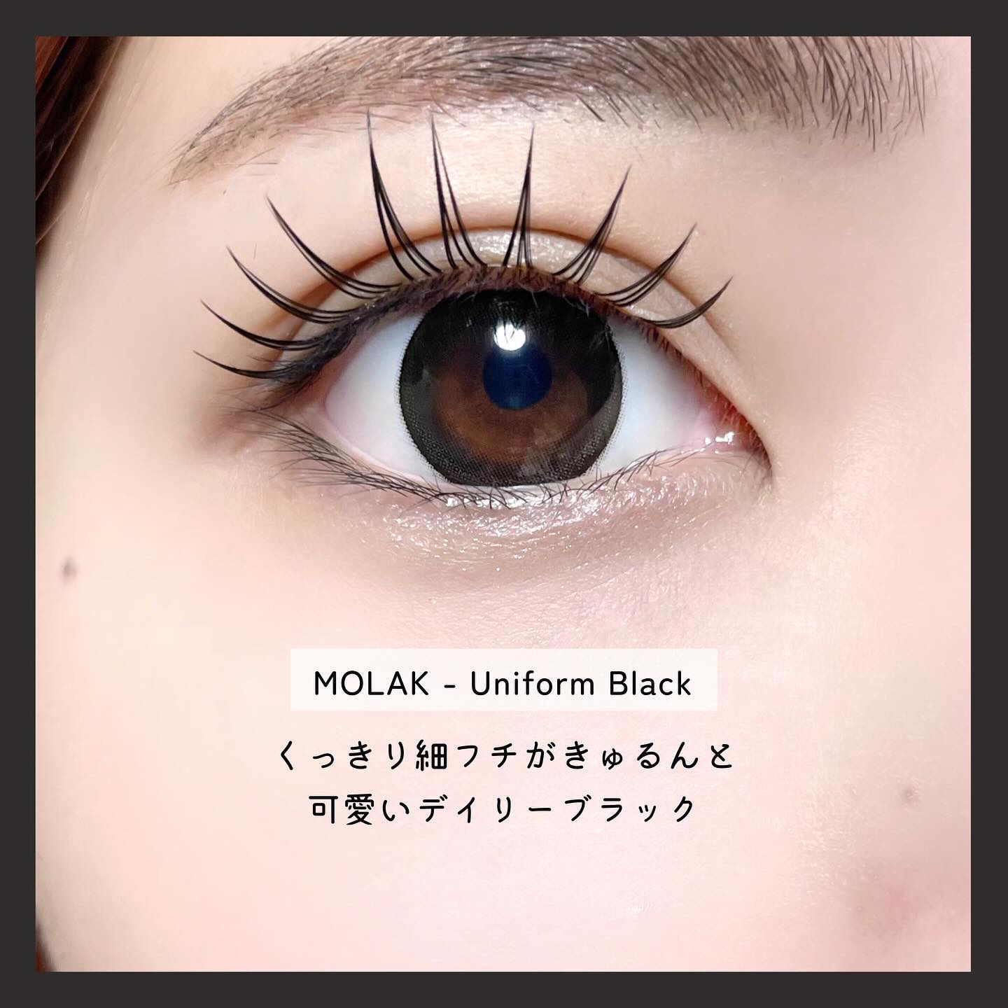 夢みたいに可愛いレンズ♡ 〝細フチ×透明感カラー×大きめサイズ〟 極細うるうるレイヤーフチで儚さたっぷりな瞳に✨ モラクのグレーコンの中で1番透明感ある🩶 くっきり細フチがきゅるんと可愛いディリー使いにぴったり✨ モラク初の黒コン🖤