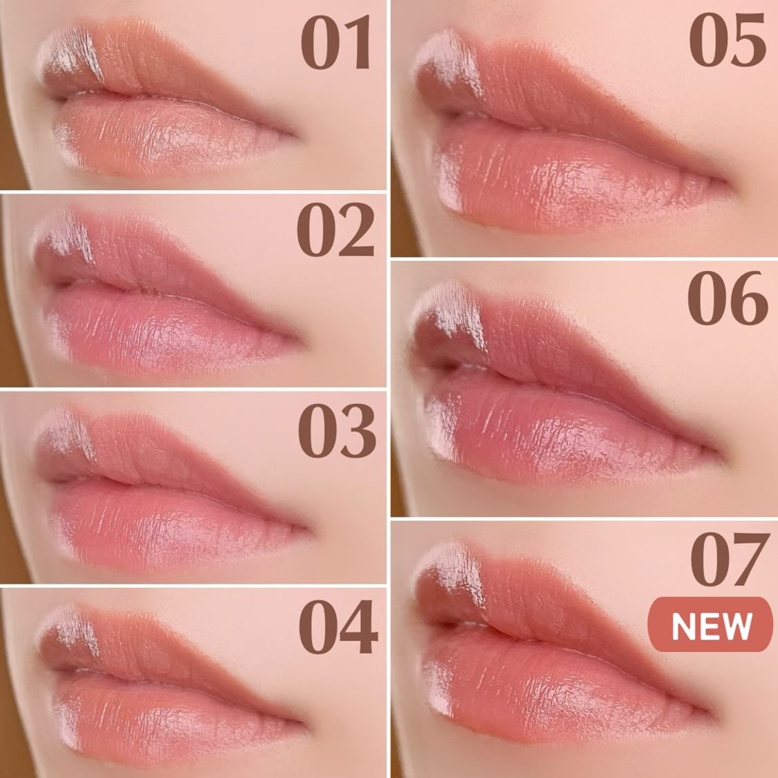 このグラスティングメルティングバームと言えばこのむっちり光沢感のある仕上がり! 重ね塗りをしても厚塗り感が出ず透け感のある仕上がりになるのもいい!! ウォーターホールディングシステムが唇の水分を飛ばさないように高保湿の保護膜を形成するため、時間が経っても水分感溢れる仕上がりが持続するよ😊 唇に当てると体温でじわっととろけてなめらかな塗り心地でまるでキャンディみたいなツヤ感のある唇に仕上がる♡ 今回の新色はグレーがひとさじ加わったようなナチュラルなヌーディーカラーが全6色展開になってます! これで既存のカラーと合わせると全部で15色展開になりました✨ めっちゃカラバリ豊富!!
