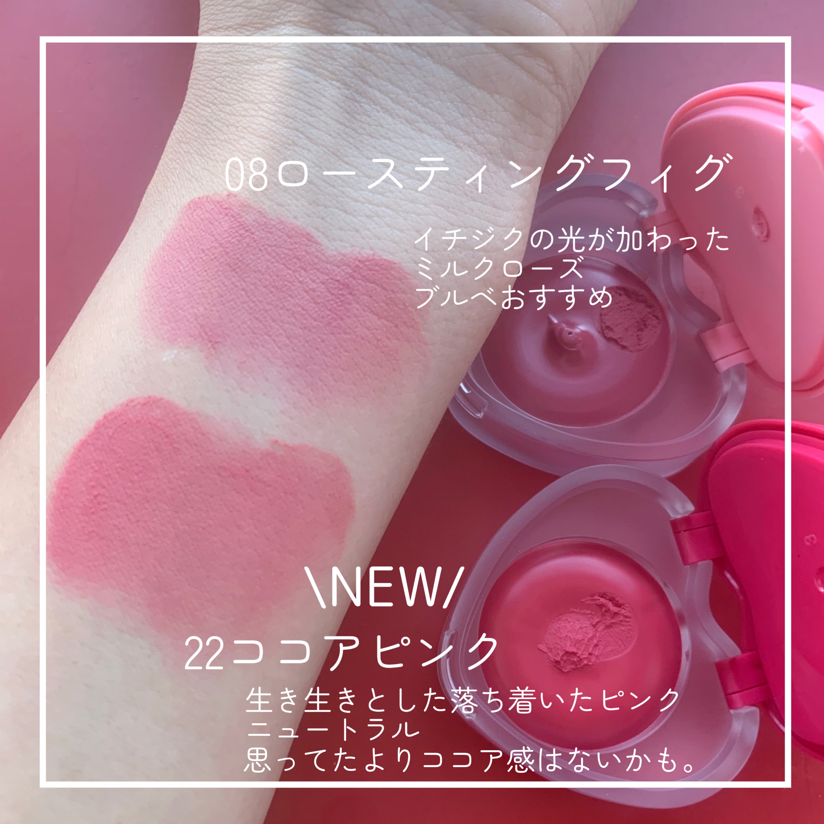 リップにもチークにも使える! サッと塗るだけで簡単ふわふわな流行りのスフレカラーポット💕 自慢したくなるハートのパッケージ可愛すぎる😍✨ ミニブラシ付きで衛生的に使えるのが最高🎯✨ チョコレートのような癖になる甘い香り🍫 とにかくパケが可愛いのでプレゼント用にもぴったりです🎁💕