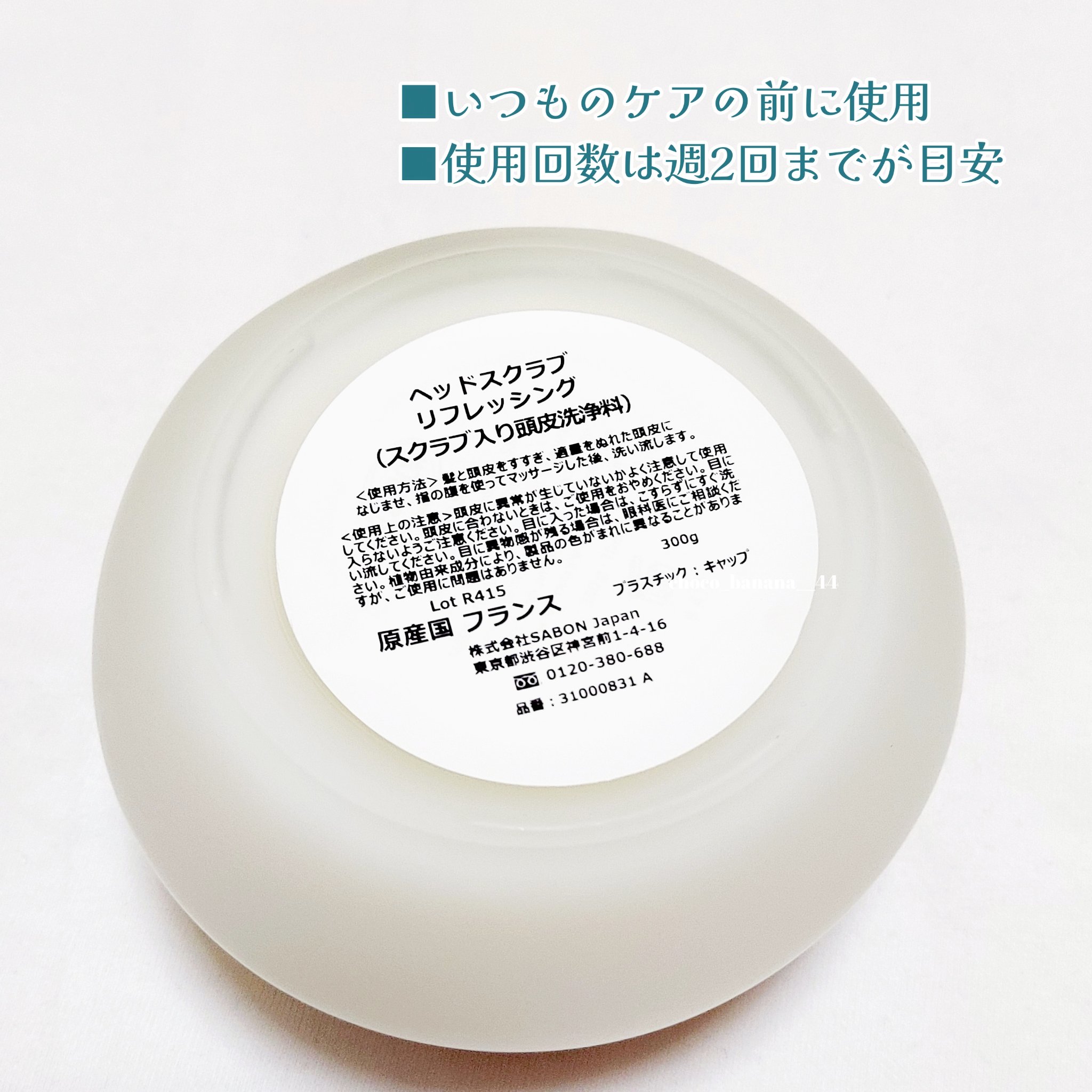 サボン ヘッドスクラブリフレッシング ミネラル豊富な死海の塩で、頭皮の古い角質やにおいの元となる皮脂、汚れをオフしてくれるヘッドスクラブ♡ 今まで持っていなかったヘッドスクラブなので使うのドキドキ💓 頭皮の状態と香りに合わせて3種類から選ぶこ...