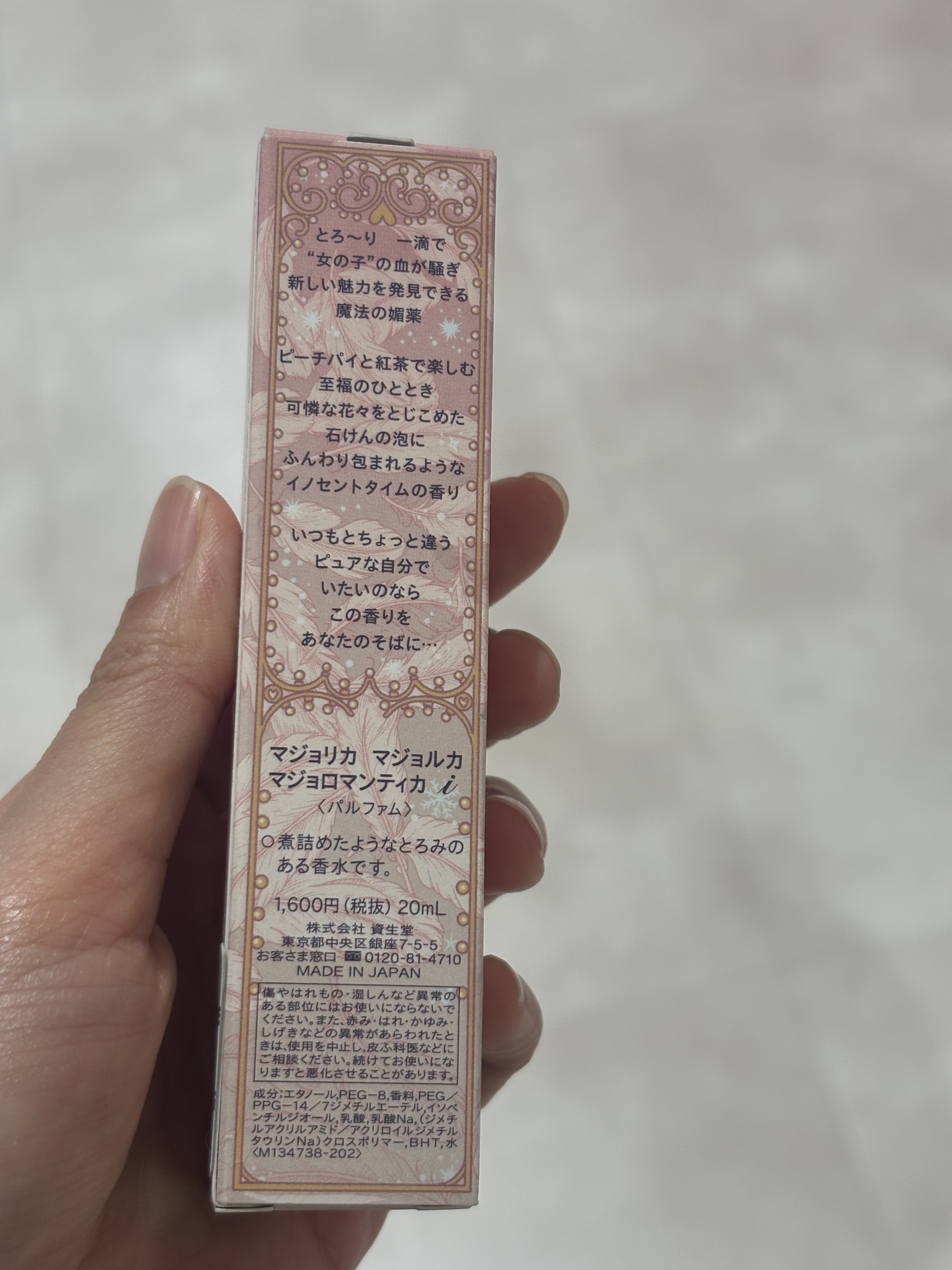 - 〈数量限定〉 とろ~り一滴で”女の子”の血が騒ぎ、新しい魅力を発見できる魔法の媚薬 ファンと共創した限定品 ○煮詰めたようなとろみのある香水です。 〇ピーチパイとフローラルサボンの香り -ピーチパイと紅茶で楽しむ至福のひととき。可憐な花々を閉じ込めた石けんの泡にふんわり包まれるようなイノセントタイムの香り