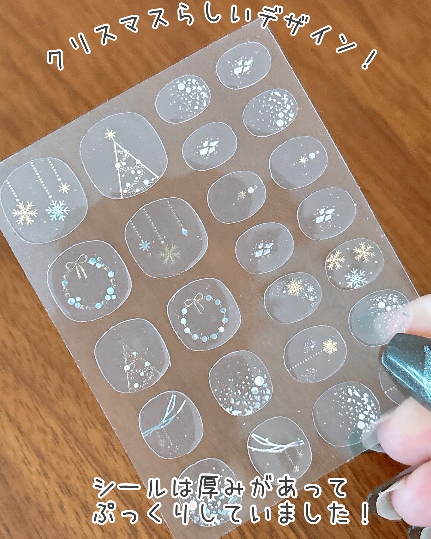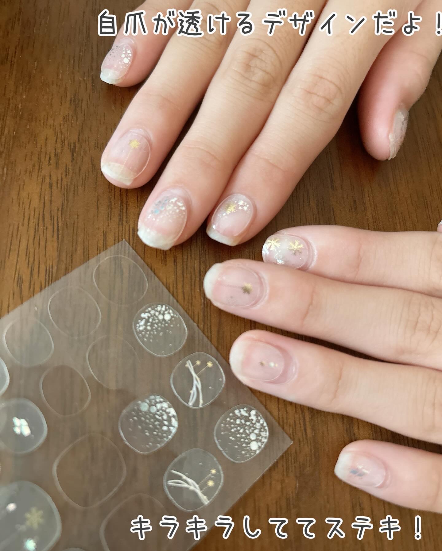 爪が短いので普通のネイルシールだとかなり切らなきゃいけないのと、爪先にデザインがあるものだと下手したら見えない私🫥 全く切らなくて良いから楽でした♫ 以前貼ったフットジェルネイルシールは(もう3週間以上前かな)いまだに全部剥がれずついてるけど、指はどうかな?(笑) 気軽にできるし、110円だからおすすめです🥰