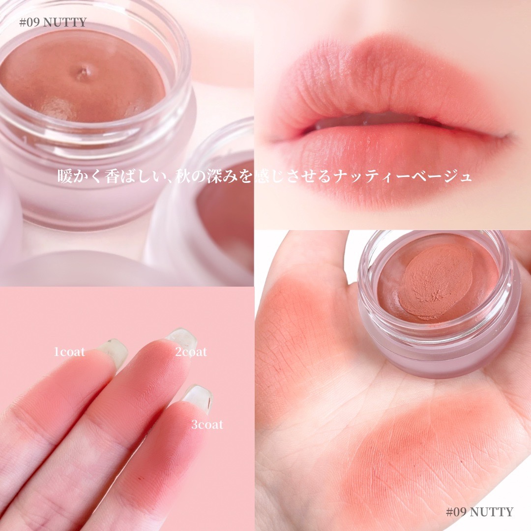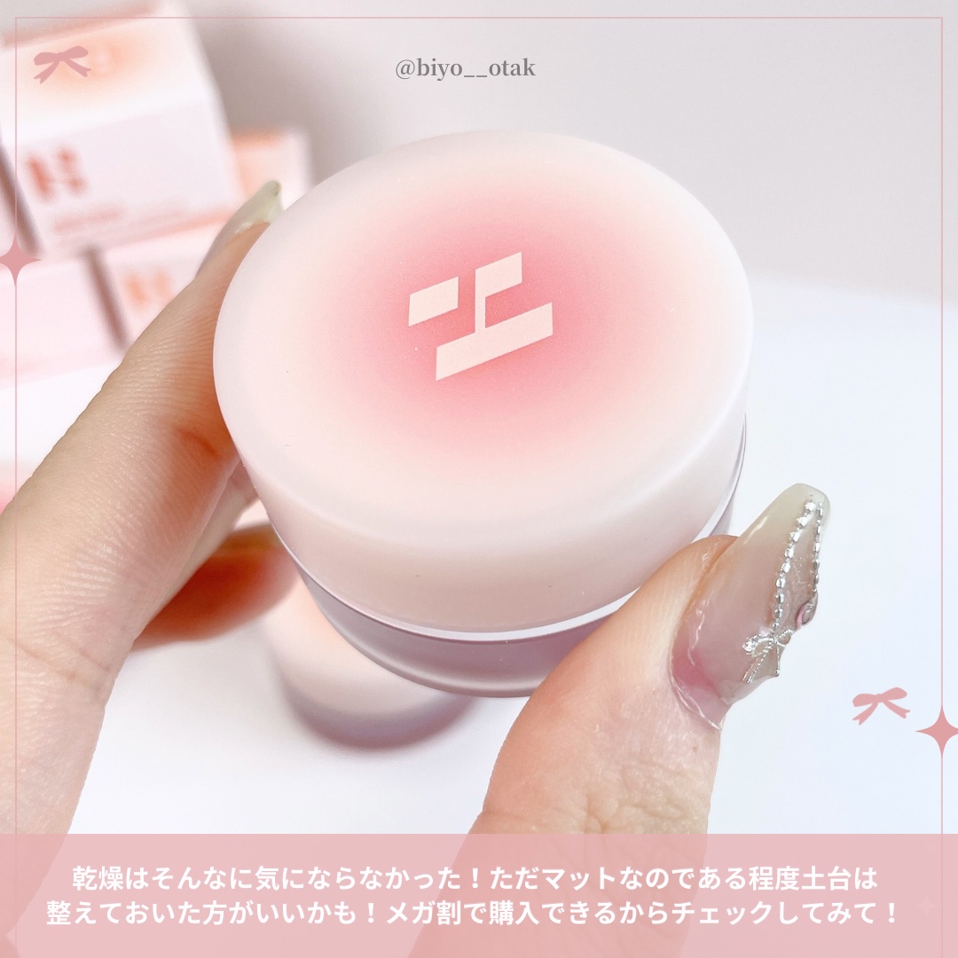 肌に自然と馴染む血色カラーが勢揃い... !! トーンにやさし〜く馴染んでくれるよ🫶🏻 しかも仕上がりがまじやばい!トントンっと馴染ませると外側サラッとなのに内側しっとり! ブラーゲルとセバムパウダーの組み合わせで凹凸を埋めて密着、チークなのにお肌を綺麗に見せてくれるの!