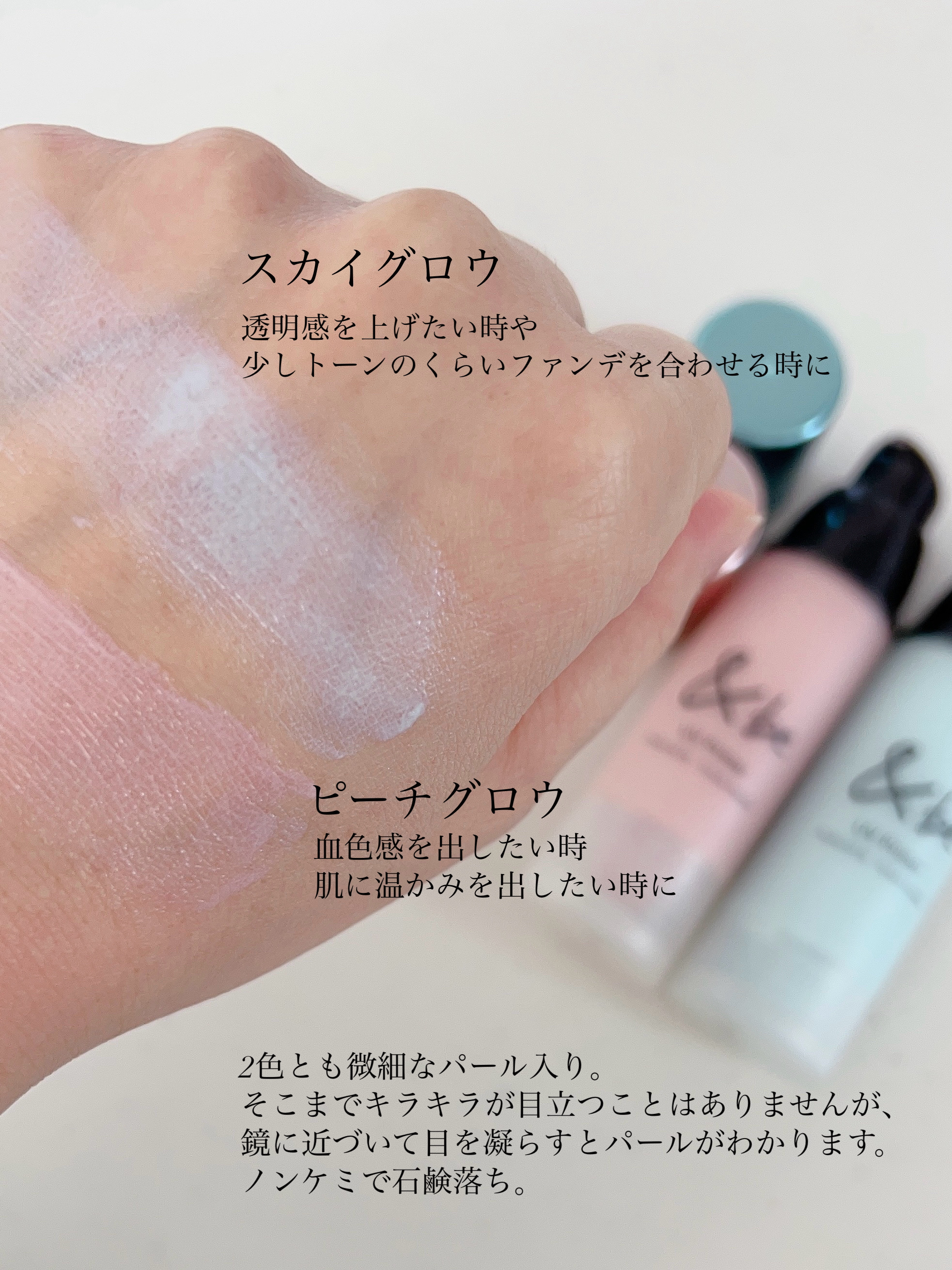 - <シャイニーグロウ> 水、酸化亜鉛、スクワラン、トリ(カプリル酸/カプリン酸)グリセリル、酸化チタン、BG、安息香酸アルキル(C12-15)、イソステアリン酸PEG-20グリセリル、プロパンジオール、トリエトキシカプリリルシラン、ペンチレングリコール、イソステアリン酸、水酸化Al、エクトイン、グリコーゲン、プルーン分解物、マンダリンオレンジ果皮エキス、ソメイヨシノ葉エキス、ビオサッカリドガム-4、オウゴン根エキス、ビルベリー葉エキス、グリセリン、シリカ、ジステアルジモニウムヘクトライト、キサンタンガム、ポリアクリレートクロスポリマー-6、ポリメチルシルセスキオキサン、ジメチコン、PEG-11メチルエーテルジメチコン、ポリヒドロキシステアリン酸、イソステアリン酸ポリグリセリル-10、セスキイソステアリン酸ソルビタン、トリイソステアリン酸ポリグリセリル-2、ポリソルベート80、フェノキシエタノール、トコフェロール、ラバンデュラハイブリダ油、マンダリンオレンジ果皮油、ベルガモット果実油、ティーツリー葉油、ローズマリー葉油、オレンジ油、オオベニミカン果皮油、マイカ、酸化鉄 <ピーチグロウ> 水、酸化亜鉛、スクワラン、トリ(カプリル酸/カプリン酸)グリセリル、酸化チタン、BG、安息香酸アルキル(C12-15)、イソステアリン酸PEG-20グリセリル、プロパンジオール、トリエトキシカプリリルシラン、ペンチレングリコール、イソステアリン酸、水酸化Al、エクトイン、グリコーゲン、プルーン分解物、マンダリンオレンジ果皮エキス、ソメイヨシノ葉エキス、ビオサッカリドガム-4、オウゴン根エキス、ビルベリー葉エキス、グリセリン、シリカ、ジステアルジモニウムヘクトライト、キサンタンガム、ポリアクリレートクロスポリマー-6、ポリメチルシルセスキオキサン、ジメチコン、PEG-11メチルエーテルジメチコン、ポリヒドロキシステアリン酸、イソステアリン酸ポリグリセリル-10、セスキイソステアリン酸ソルビタン、トリイソステアリン酸ポリグリセリル-2、ポリソルベート80、フェノキシエタノール、トコフェロール、ラバンデュラハイブリダ油、マンダリンオレンジ果皮油、ベルガモット果実油、ティーツリー葉油、ローズマリー葉油、オレンジ油、オオベニミカン果皮油、マイカ、酸化鉄、グンジョウ