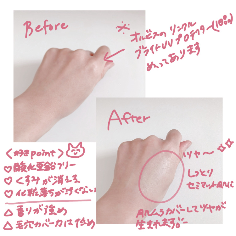 肌がずっとサラサラで、どういうこと?ってなります。 このパウダーは酸化亜鉛フリーなのが魅力的です。 めちゃくちゃ期待して使用しましたが、私レベルの毛穴だと>>>つるんと陶器肌<<<とまではなりません。