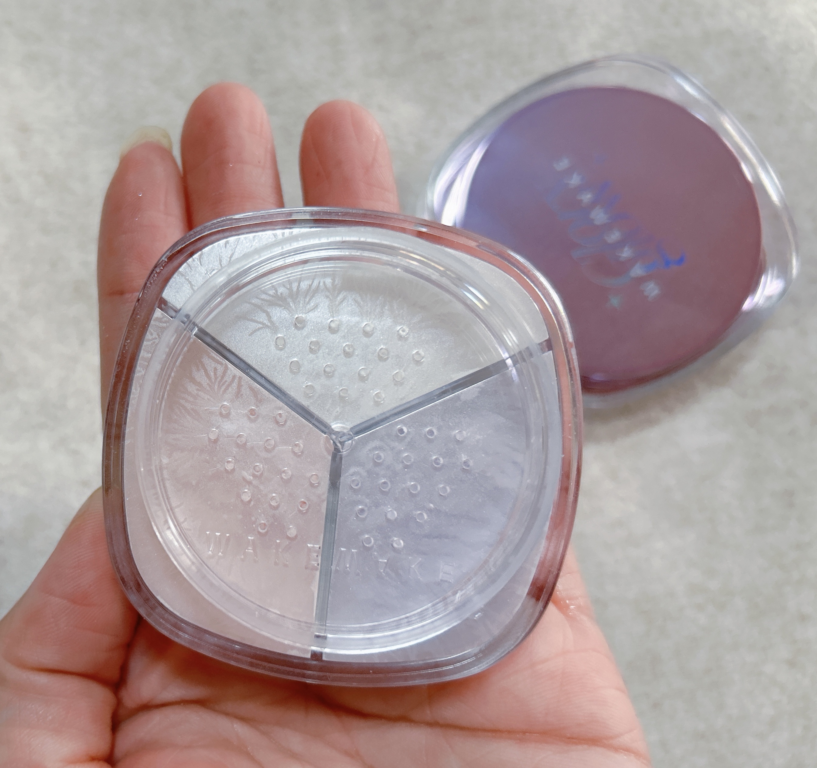 WAKEMAKEから初のホリデーアイテム登場 ❄️3つのカラー組み合わせで明るい肌トーンに仕上がるパウダー 毛穴の凸凹や油分コントロールで長時間メイクキープ スクリュータイプになってるから粉漏れしにくいのがとてもよいです☺️✨ 肌に透明感を与えてくれるよー🥰❄️ パケも可愛いい〜💝