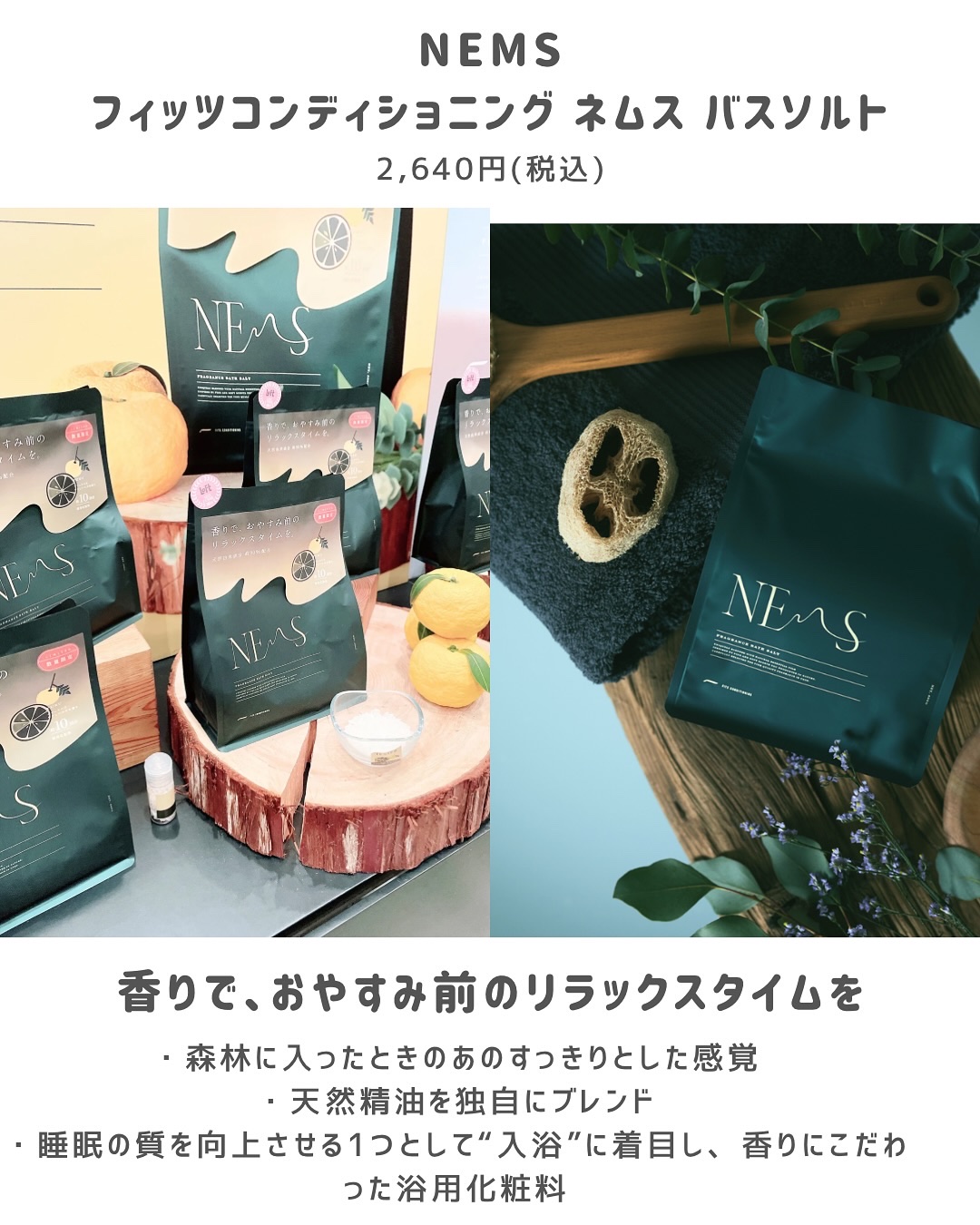 フィッツコンディショニング ネムス バスソルト ヒノキウォーム | 2,640円 |