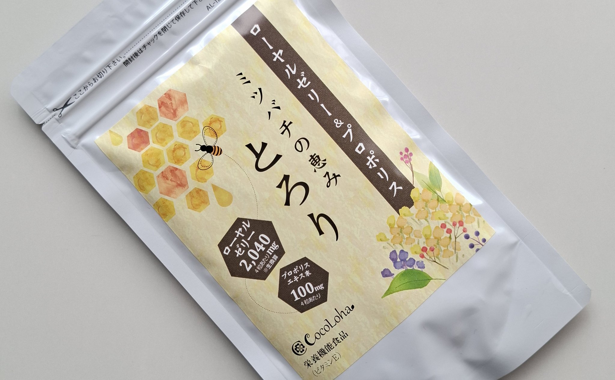 ⋆/ミツバチの恵みとろり\おためしさせていただきました☺ローヤルゼリー&プロポリスのサプリメントだよいつまでも活発でハツラツとした毎日をサポートしてくれるよデセン酸濃度6%以上のチベット高山で、無農薬栽培の菜の花から採取したロイヤルゼリーを使...