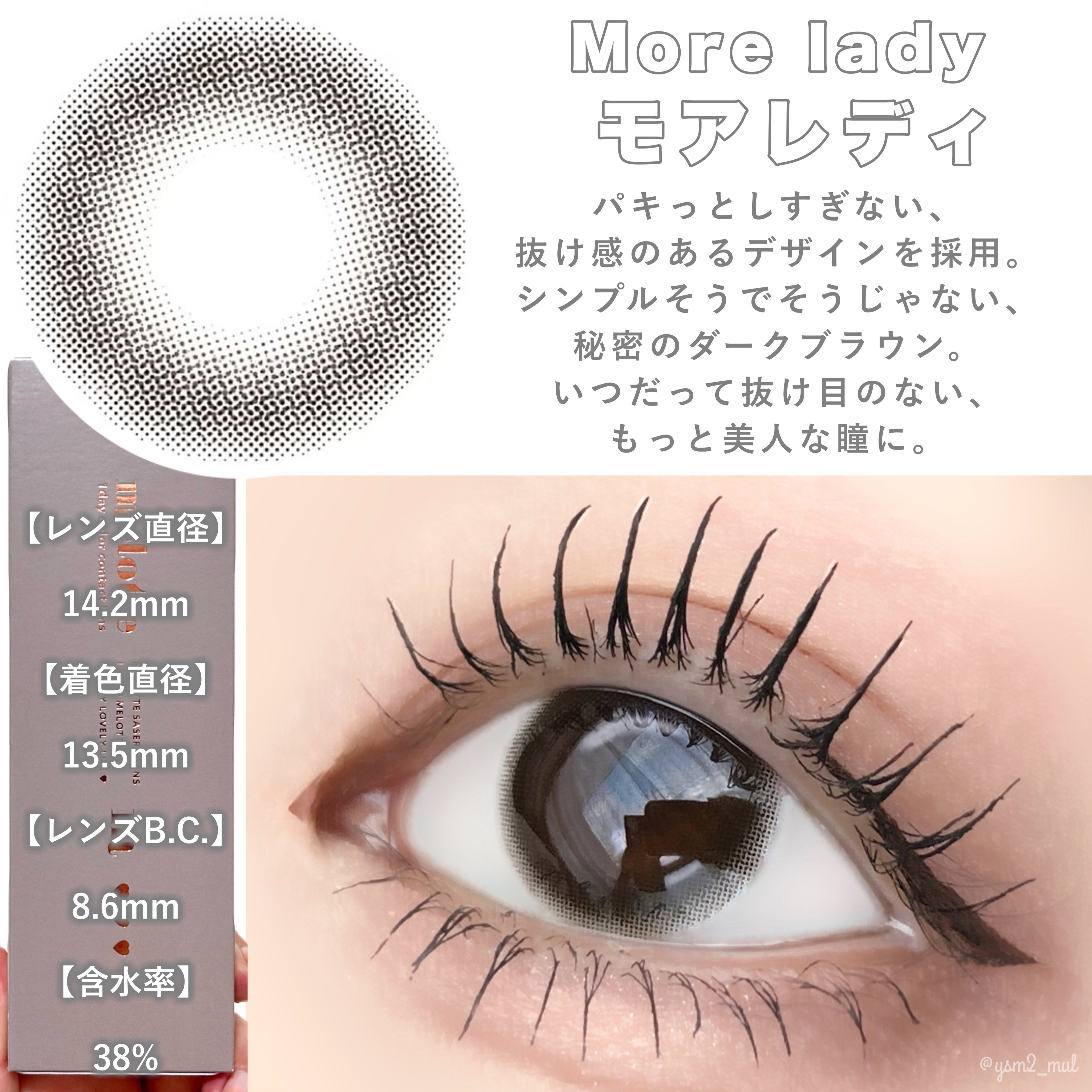 このカラコン”かけひきレンズ”っていうの🤍 朱里ちゃんらしいネーミングセンスもポイントだね\(◡̈)/♥︎ Darling figは、じゅわっと彩るモーヴカラーとふんわり細フチのグレージュカラー💞 柔らかくて透明感があるカラコンだよ👀✍🏻💭 More ladyは、パキッとし過ぎない抜け感のあるくりっとダークブラウンカラー♥ シンプルそうでそうじゃない、接近戦も美しい、美人仕上げのカラコンだよ👌´-
