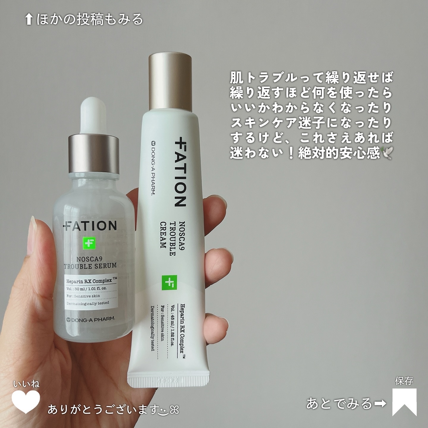 FATIONパティオン@fation.jp_official様より 🟩ノスカナイントラブルセラム🟩ノスカナイントラブルクリームをご提供頂き、使用しています。白いスッキリとしたパケが爽やかです🍃ノスカナイントラブルセラムはみずみずしいテクスチャ...