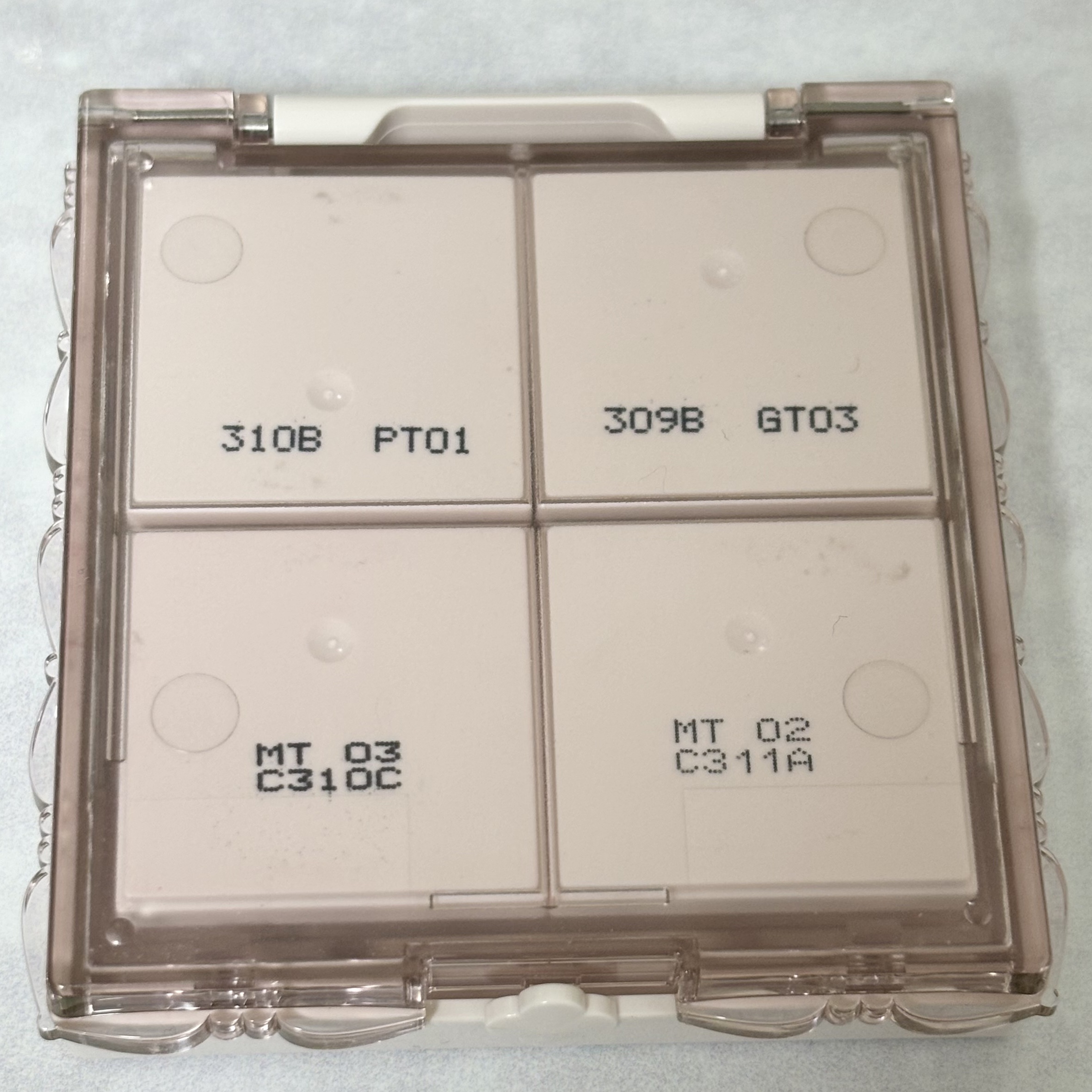 マイトーンクチュールの凄いところはバラで売ってるから自分好みにパレットを作れるところ🎨 透明のプラスチックのケースにもCANMAKEとハートの刻印?みたいなのがされてるところ🎶 ラメ感強め✨️✨️