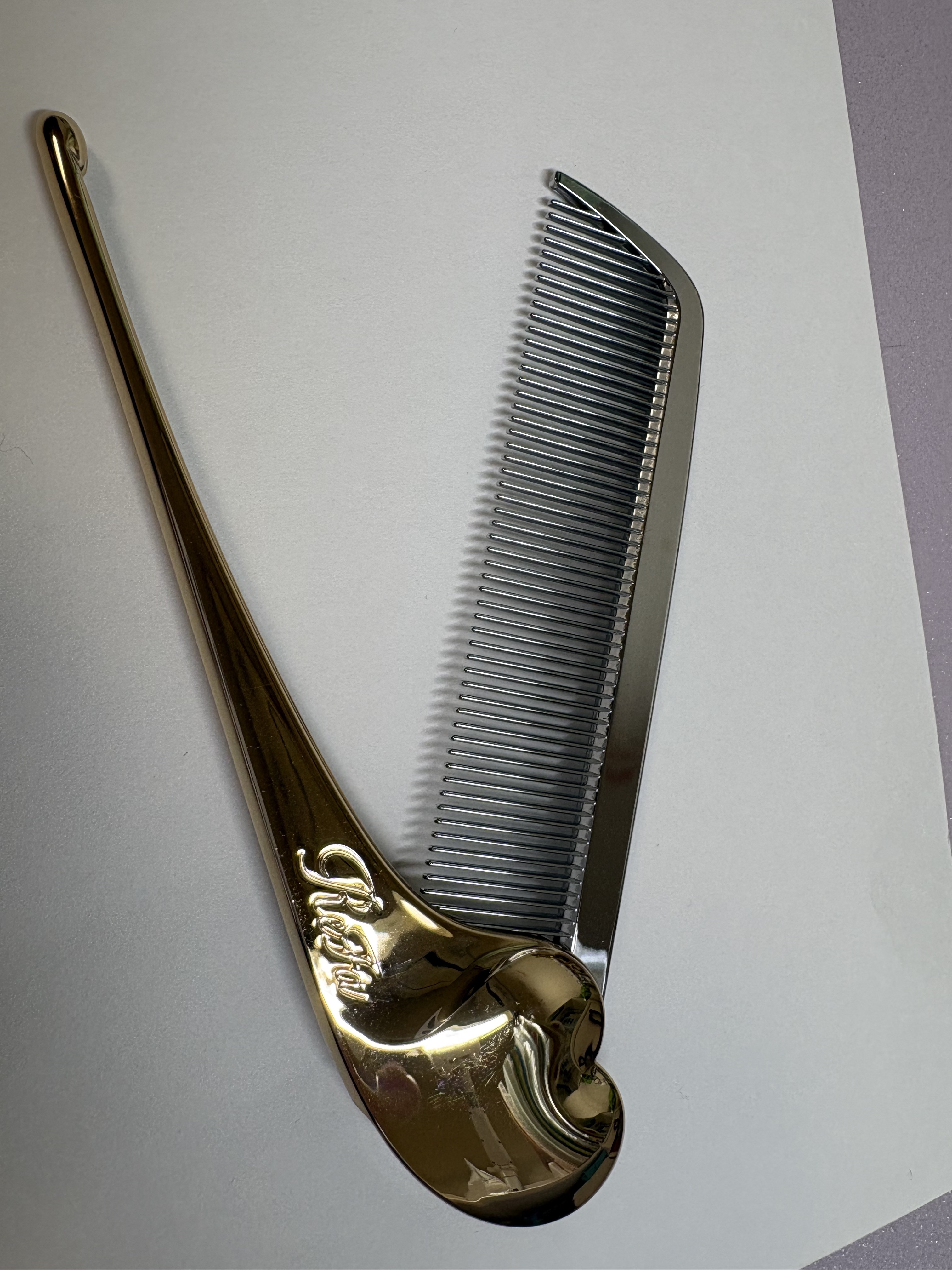 発売をとっても楽しみにしてました‼︎ 発売当日は公式サイトで買おうと思ってたら、全然繋がらず、繋がった時には売り切れで買えませんでした。。 軽っ!!!って思って勝手にもう少し重みのある感じのコームなのかと思っていたので、少しチープに感じてしまいました。。 見た目は可愛いし、外出先でこれで髪を梳かしてたらお洒落だし、テンション上がるのは間違いない‼︎