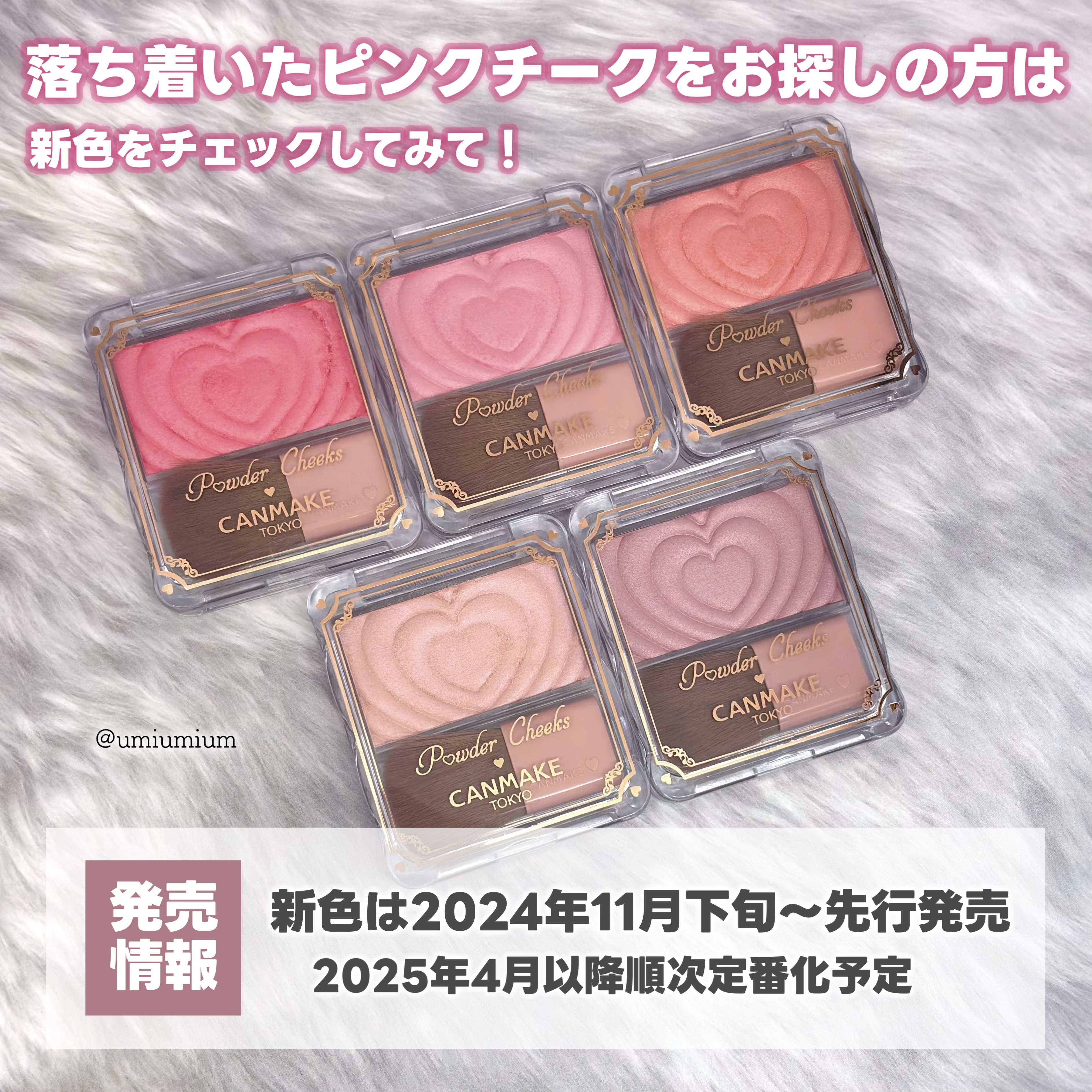 - 生まれ変わった、新・パウダーチークス! クリアな発色でしっとり溶け込むようなツヤ感単色チーク♡ 1.デザインがさらに可愛く♡ 使うたびにキュンとしちゃうハートデザイン♪ 2. 中身がもっと魅力的に ・しっとり感UP!※ ムラになりにくいクリアな発色 ・パール感がさらに繊細に!※ 溶け込むような自然なツヤ感です♪ 3. ブラシの毛量UP※ 広範囲に広げやすいふんわりブラシに進化! ※当社従来品比