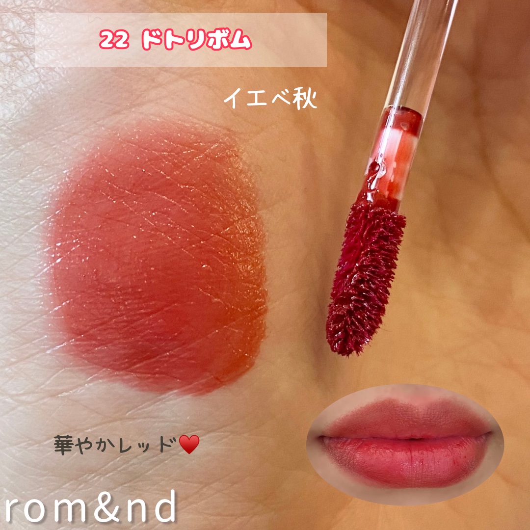 rom&nd大人気ティントリニューアル💗 カラーもパケも優勝すぎる🥹✨ 新色は5色出たんだけど今までの人気色を組み合わせたカラー✨ そんなの可愛いに決まってる🥹♥️ 新パケが可愛すぎてポーチに入ってるとテンション上がる🤭💗 パケのカラーも引き続きリップのカラーになってるから使う時分かりやすいのも嬉しい🥰