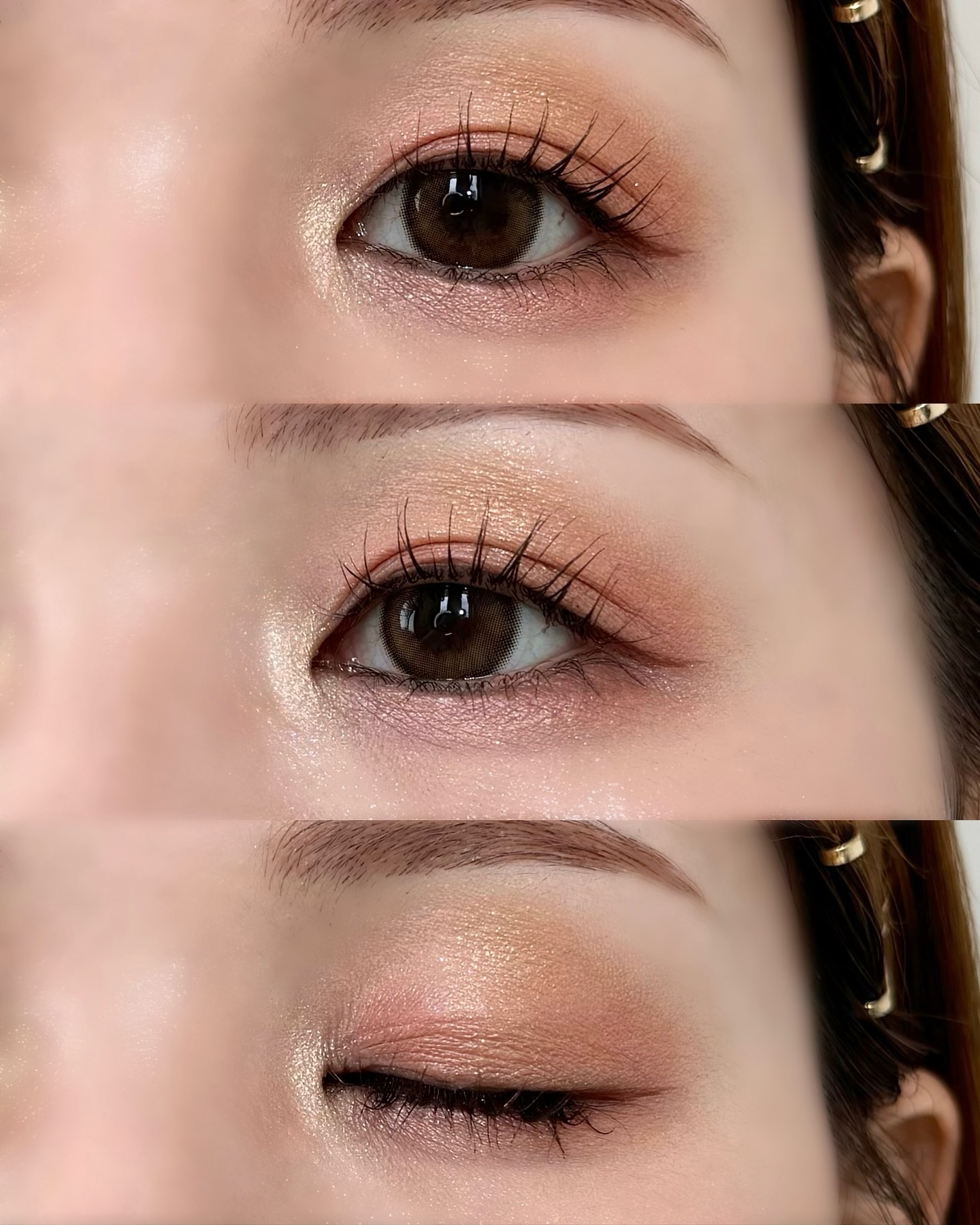 右上のピンクラメをベースに仕込んでメイクしたんだけどツヤと煌めき感えぐすぎる😳💎可愛い、、 そこに右下のカラーを重ねるとじんわり血色感が滲み出るような目元になるよ🦩 これは欠品店舗続出しそう🫣