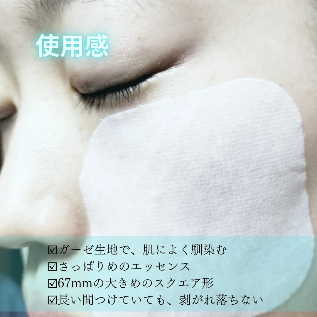 乾燥によるくすみケア、肌荒れ防止ケア、キメケアに。 ガーゼを使用した大きめのパッドで、肌あたりが良く、パックする時もぴたっと密着してくれます。 さっぱりしつつもしっとりとした使い心地が良かったです。