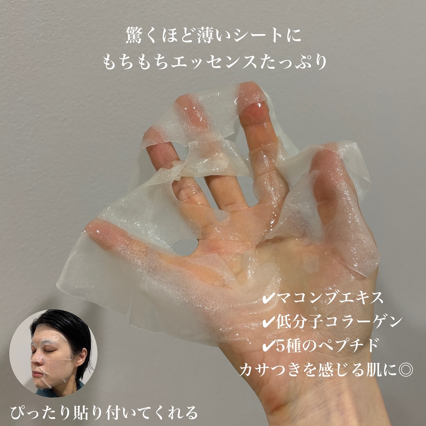 | 粘性のあるエッセンスと柔らかいシートがピタッと密着してオススメ❣️ | 詳細を見る |