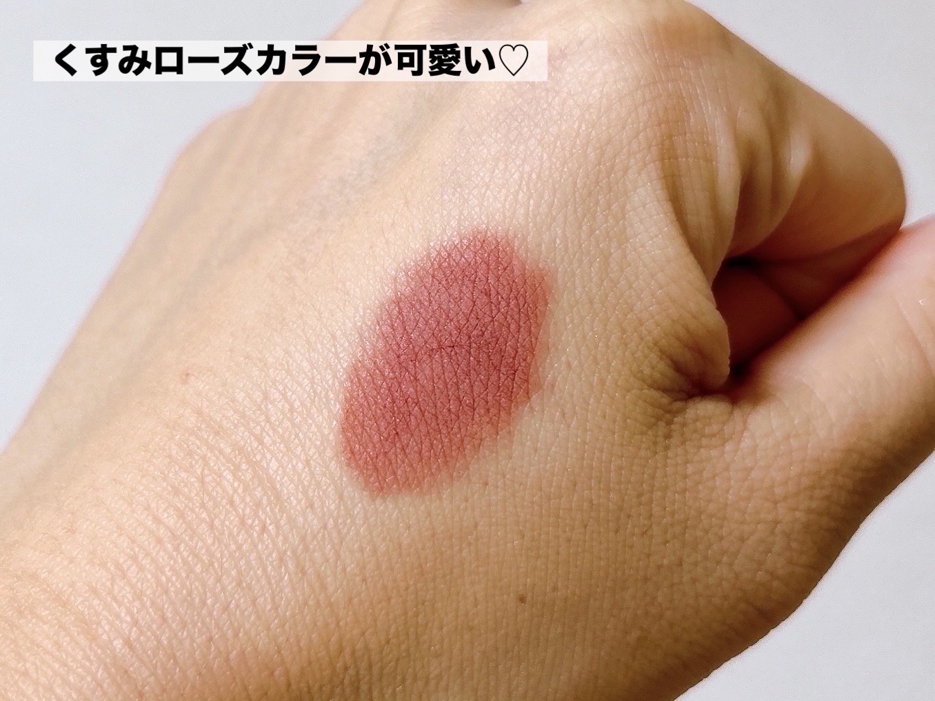 チョコレートの香り付き。香りのあるコスメがあまり得意ではない私だけど、個人的にはそこまで気にならなくて〇。 こちらを塗った後、唇のしわが気にならなくなるのがすごい\(◎o◎)/! 塗った後はさらっと密着感があり落ちにくいけど、オイルで落としにくいということもなく、良かったです☆ なんともいえない、ピンクともブラウンとも言い難い絶妙なくすみカラーだと思いました!